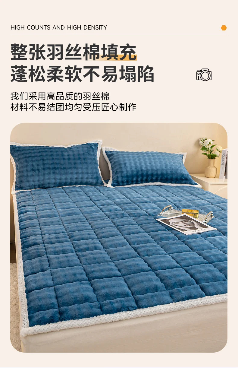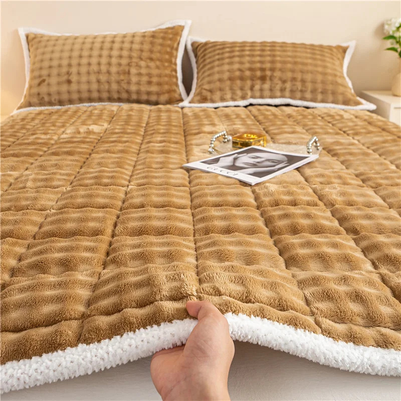 가을 겨울 신상품 토끼털 플러시 매트리스 밀크 벨벳 누빔 소프트 매트리스 기숙사 학생용 싱글 두꺼운 담요 매트리스 이불스토어 가기