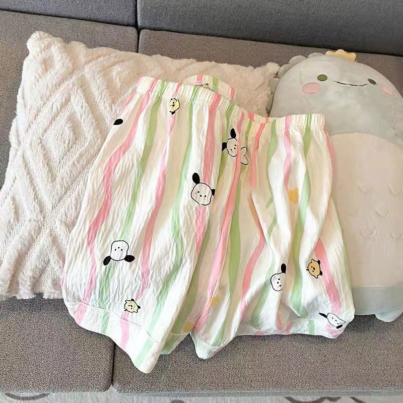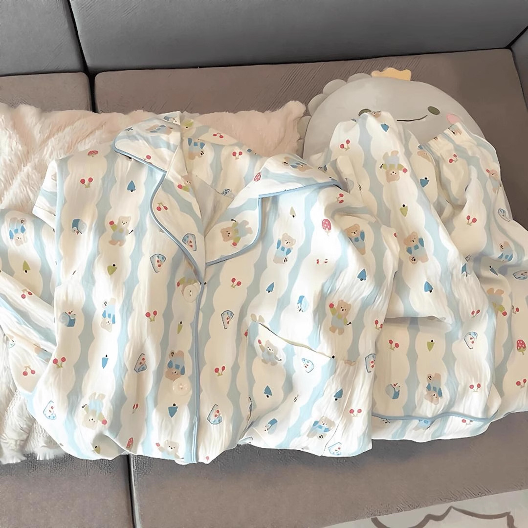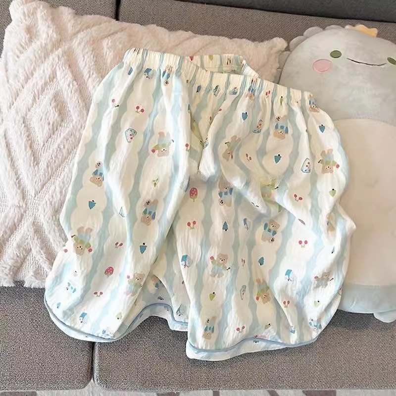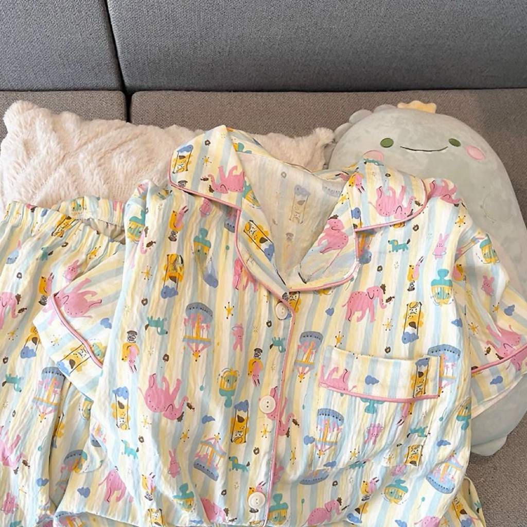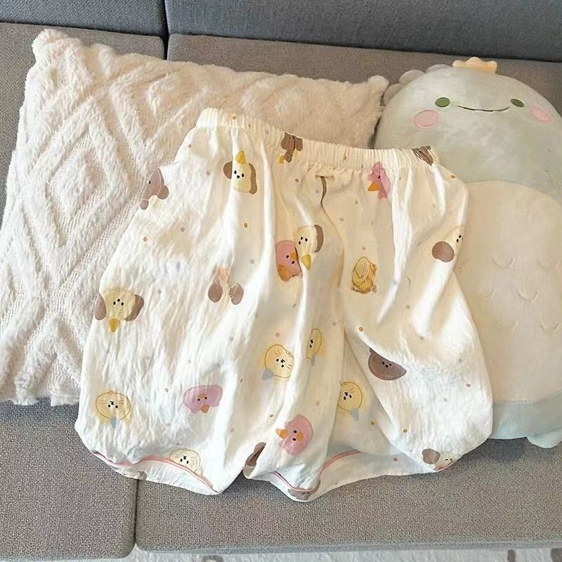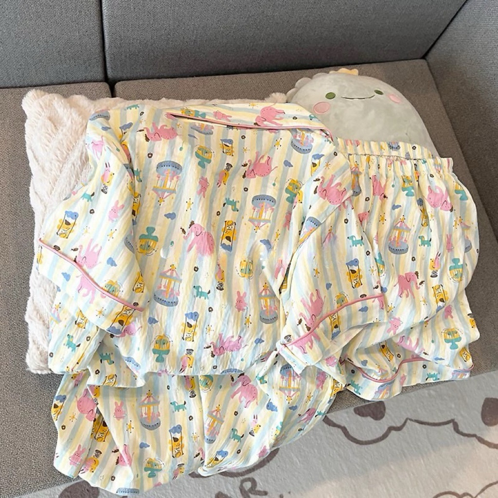 2024 새로운 도착 잠옷 여성의 여름 구름 면 달콤한 귀여운 카디건 캐주얼 짧은 소매 반바지 홈 의류 세트
