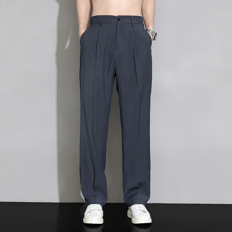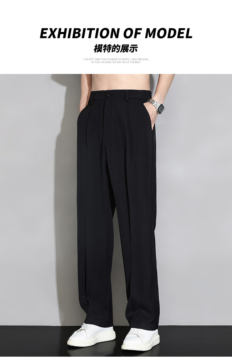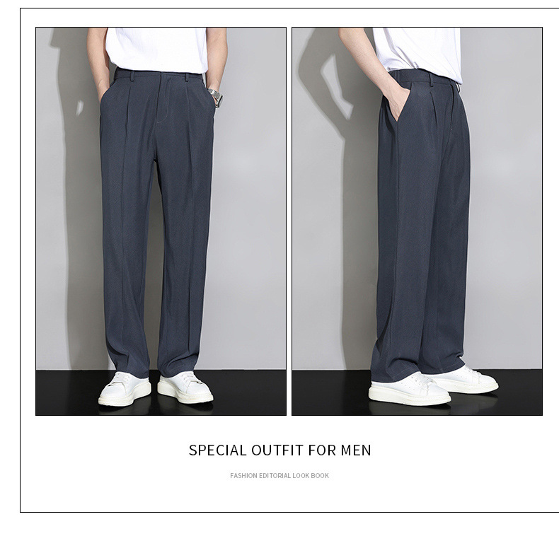 아이스 실크 바지 남자 여름 2024 새로운 와이드 레그 스트레이트 루즈 남성용 캐주얼 남성용 바지스토어 가기