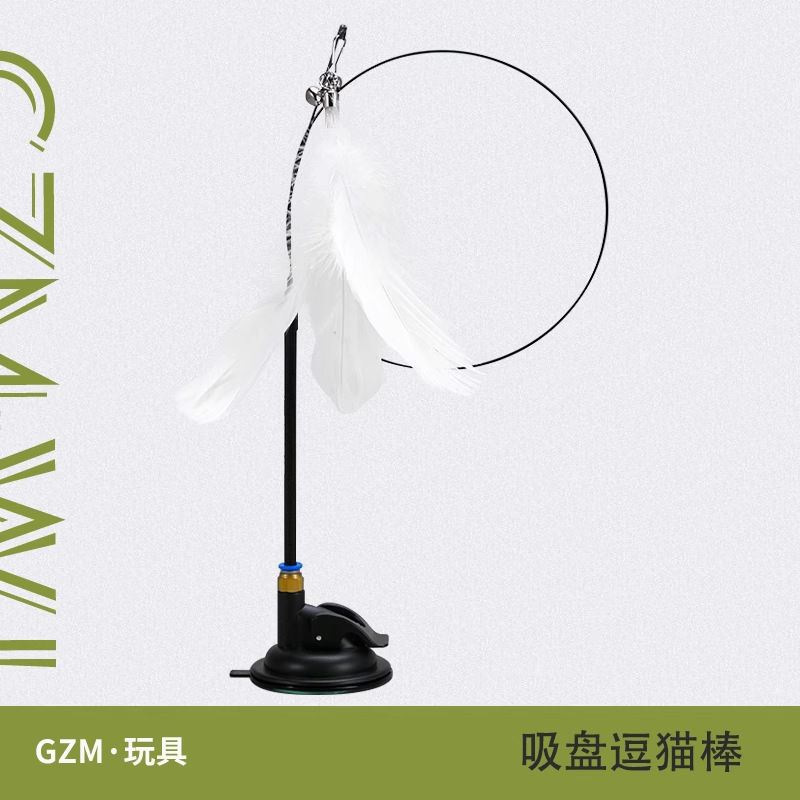 • [폭력적인 고양이에게 추천] 초강력 흡입 컵 고양이 놀리는 스틱 [깃털 머리 4개 추가]