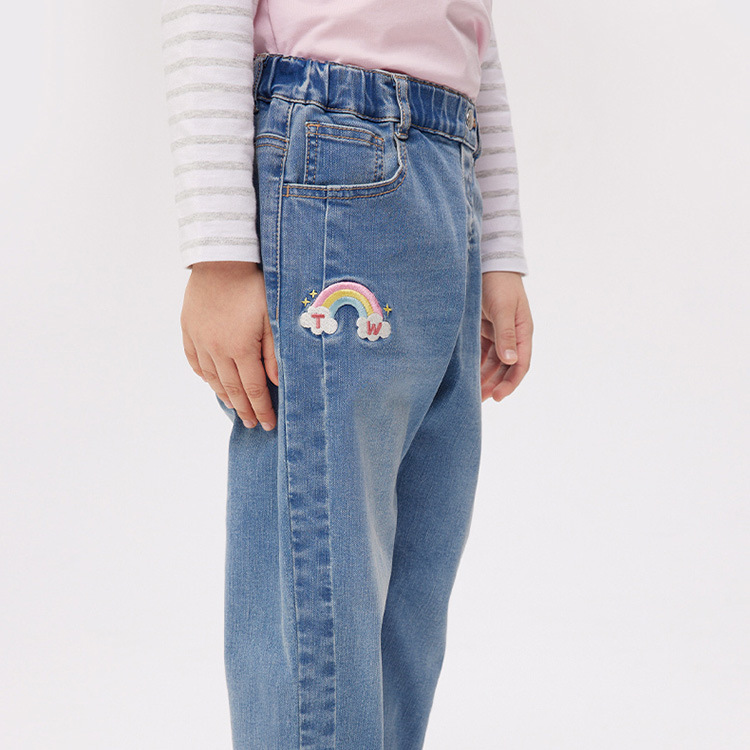 24 가을 새 소녀 만화 빨래 청바지 올 매치 솔리드 컬러 데님 바지 바지