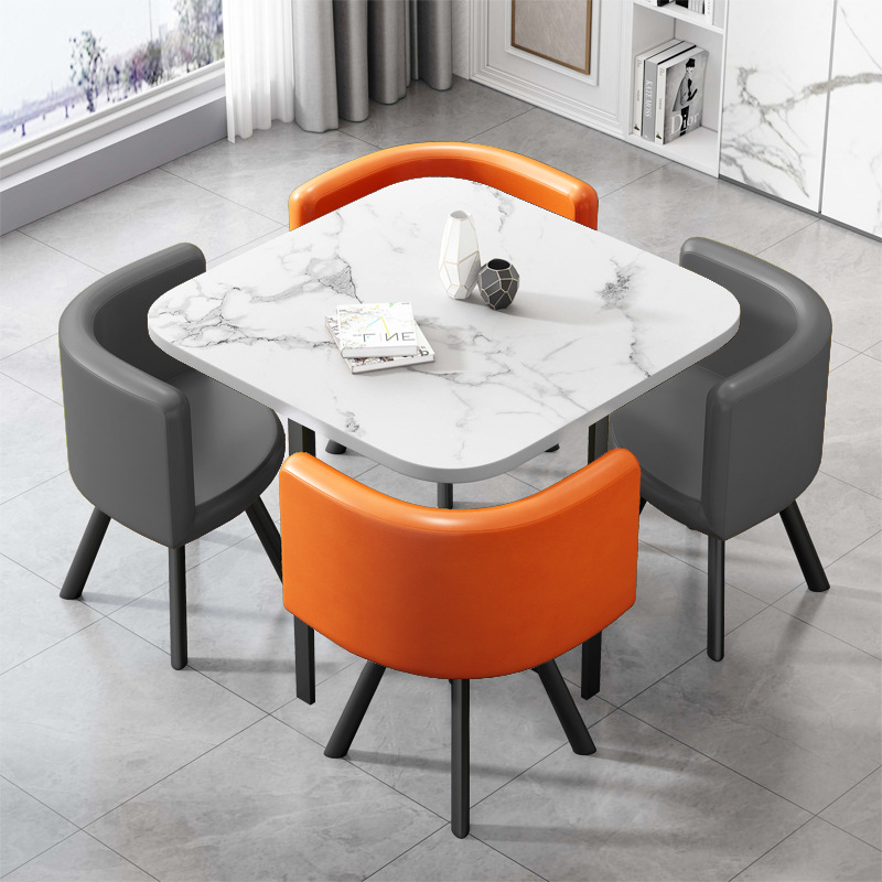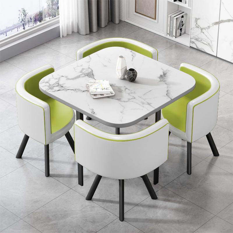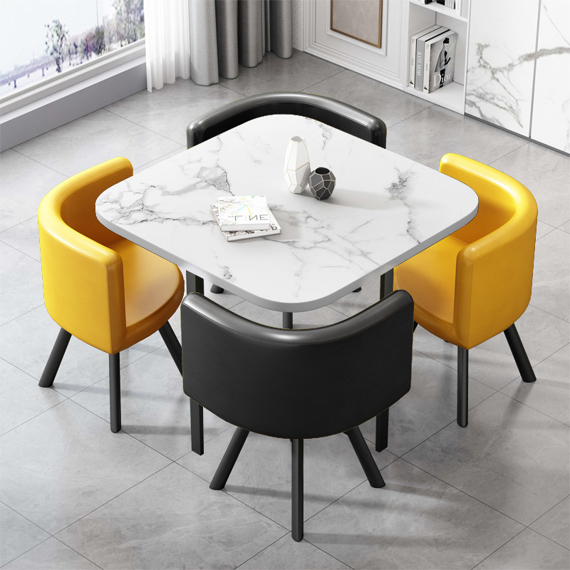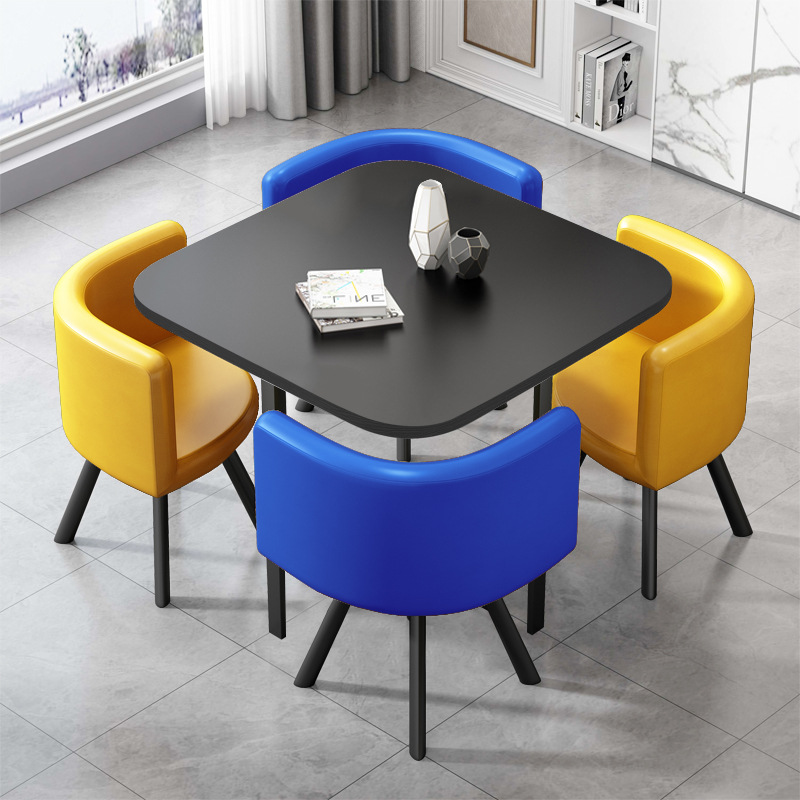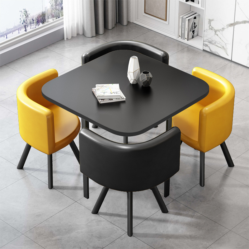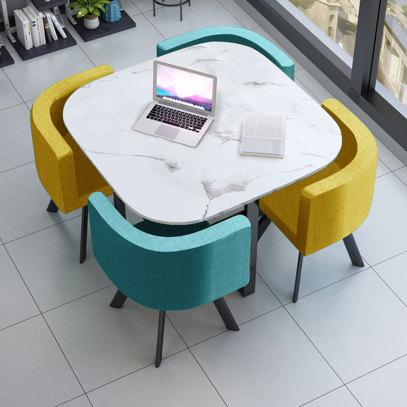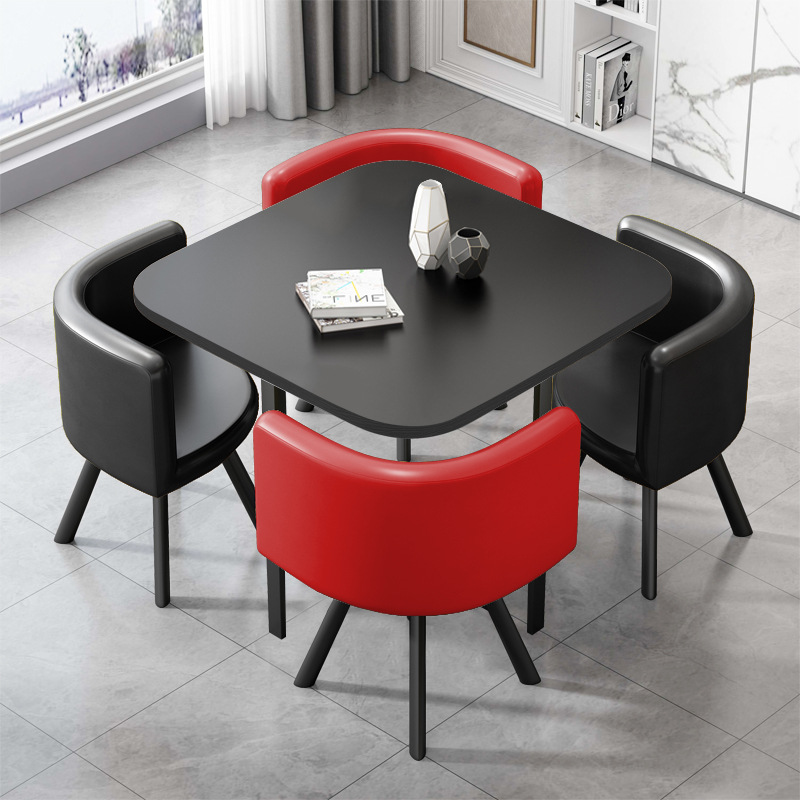 간단한 리셉션 테이블과 의자 조합 협상 테이블 숍 리셉션 테이블과 의자 사무실 레저 작은 라운드 테이블 스퀘어 다이닝 테이블 북유럽