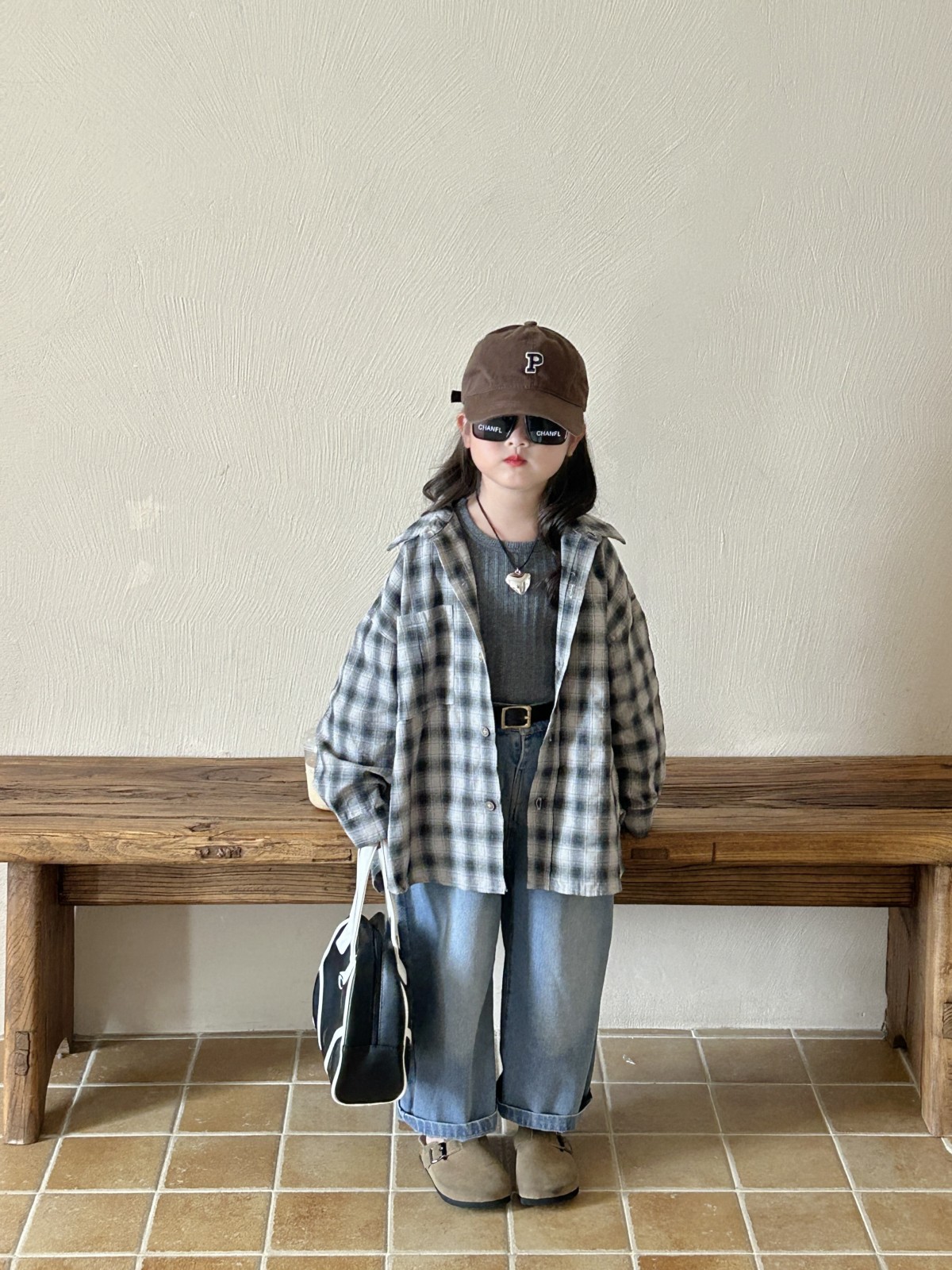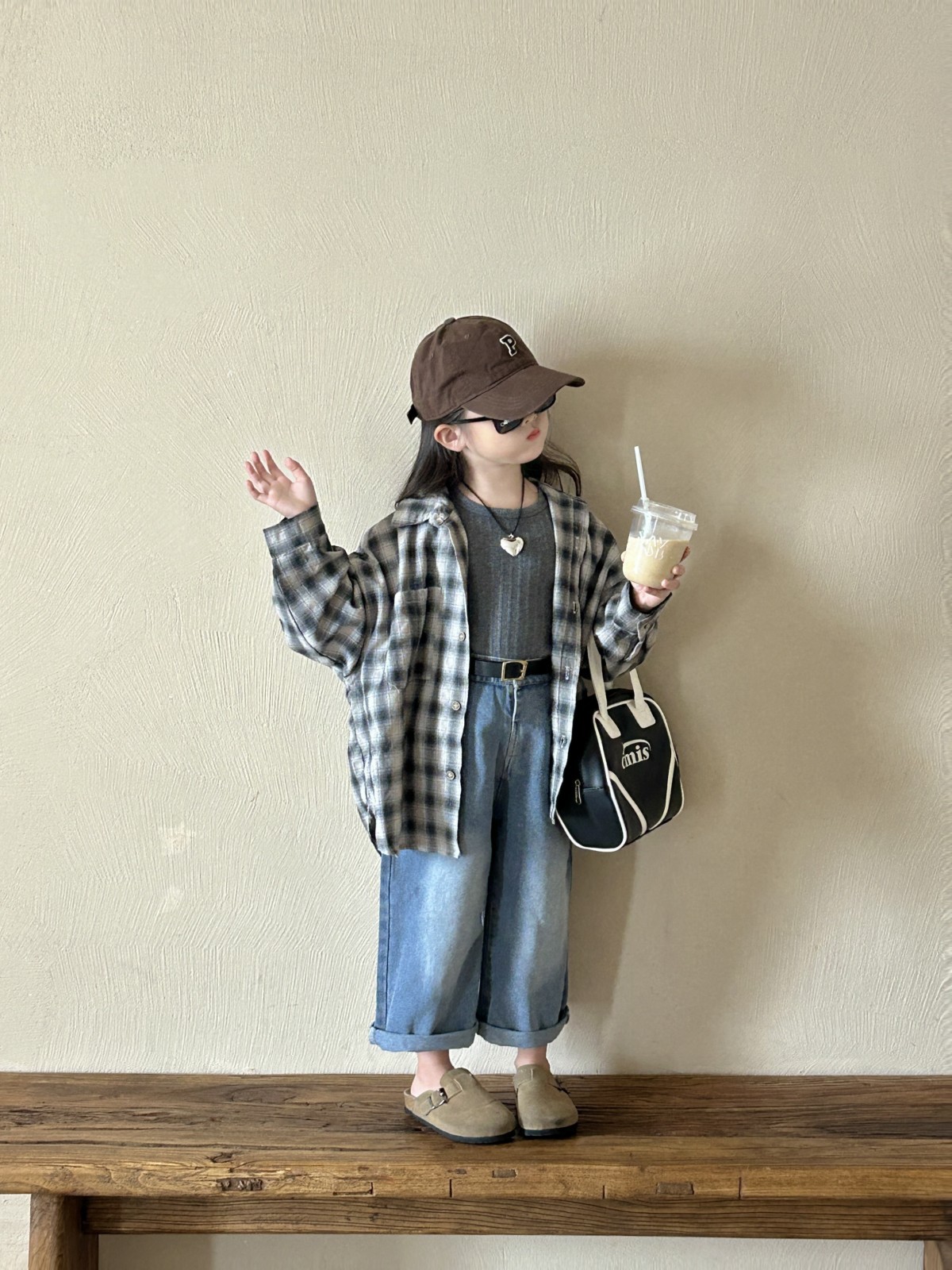 가을 2024 년 새 어린이 한국 셔츠 느슨한 대형 격자 무늬 셔츠 올매치 캐주얼 긴팔 재킷스토어 가기