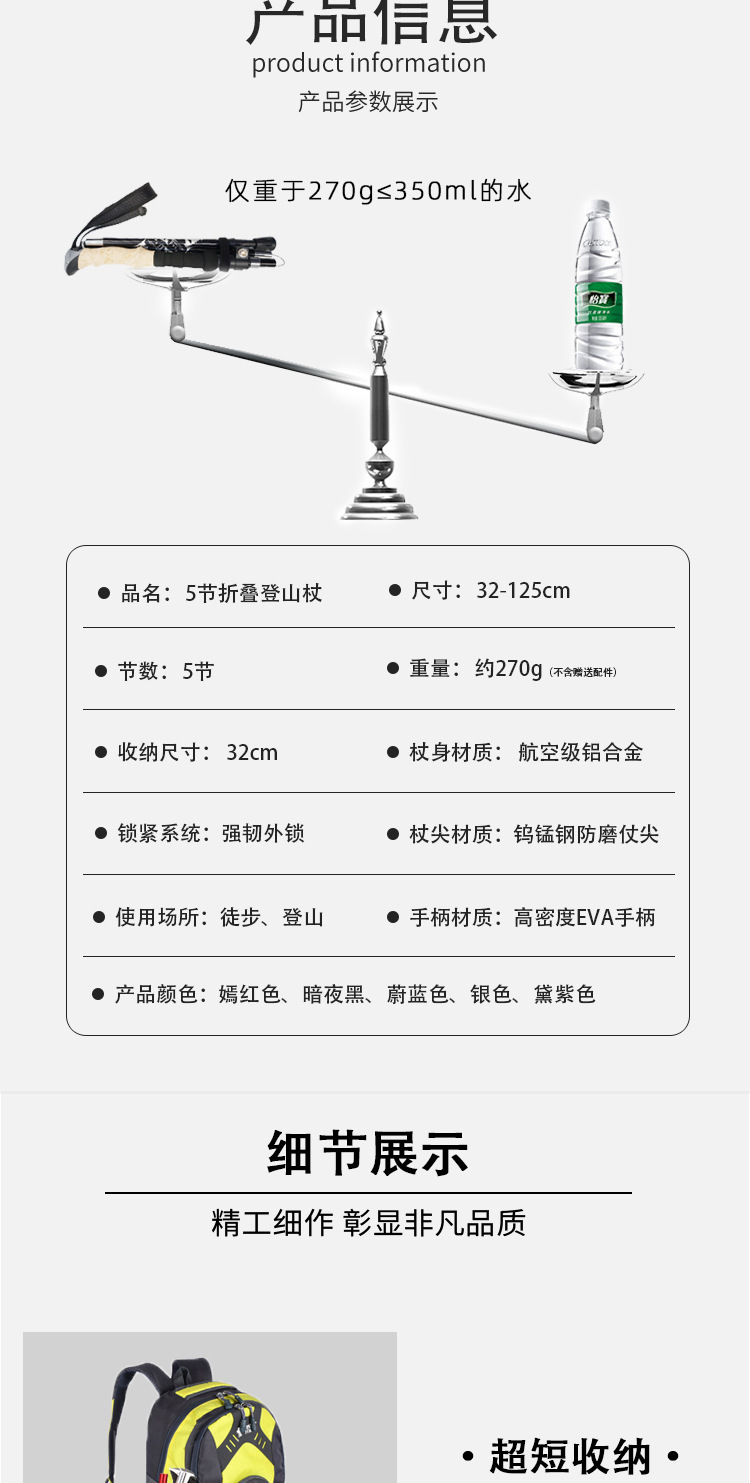 名称:5节折叠登山杖