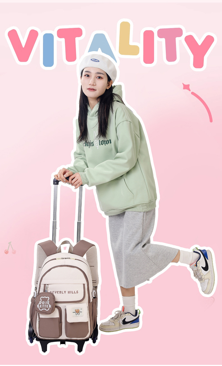 • 브라운 싱글 스쿨백 [트롤리 수납 가능]