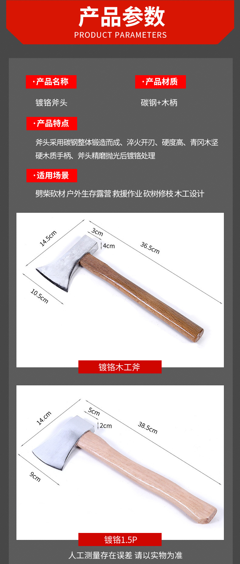 공장 직접 판매 탄소 강철 단조 크롬 도금 플레이트 도끼 절단 목재 도끼 가구 도끼