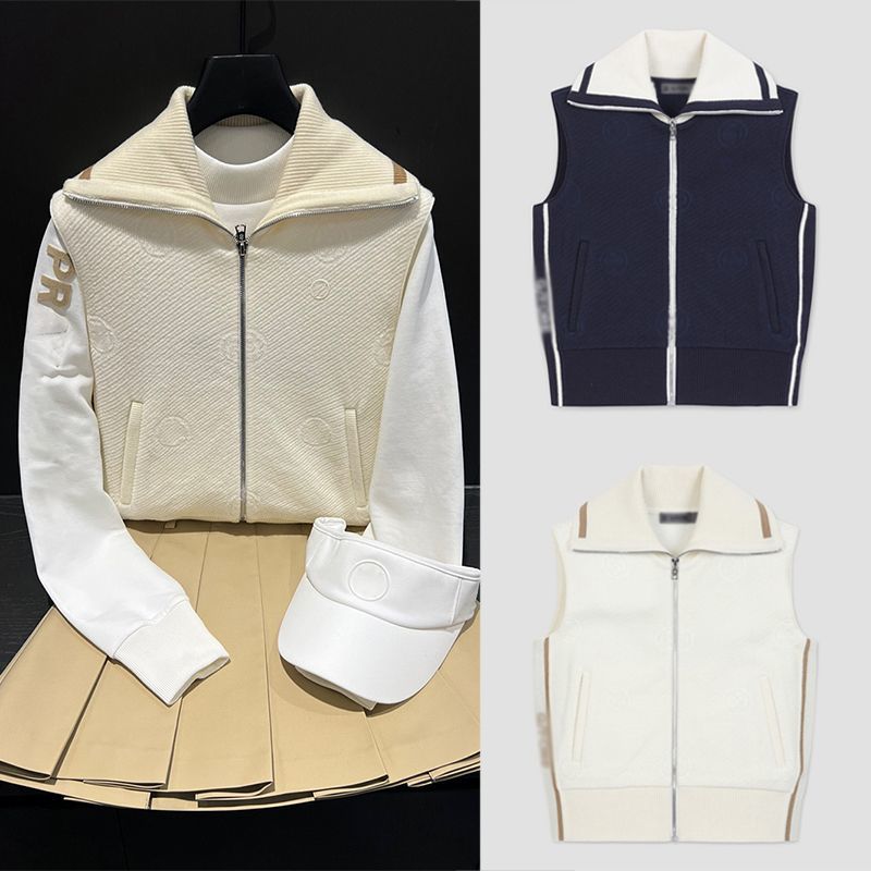 신상 한국 골프 가을 겨울 여성용 지퍼 라펠 조끼 재킷 패셔너블스토어 가기