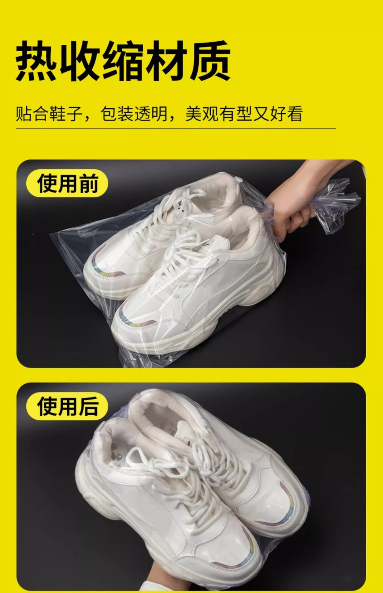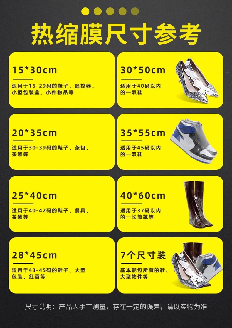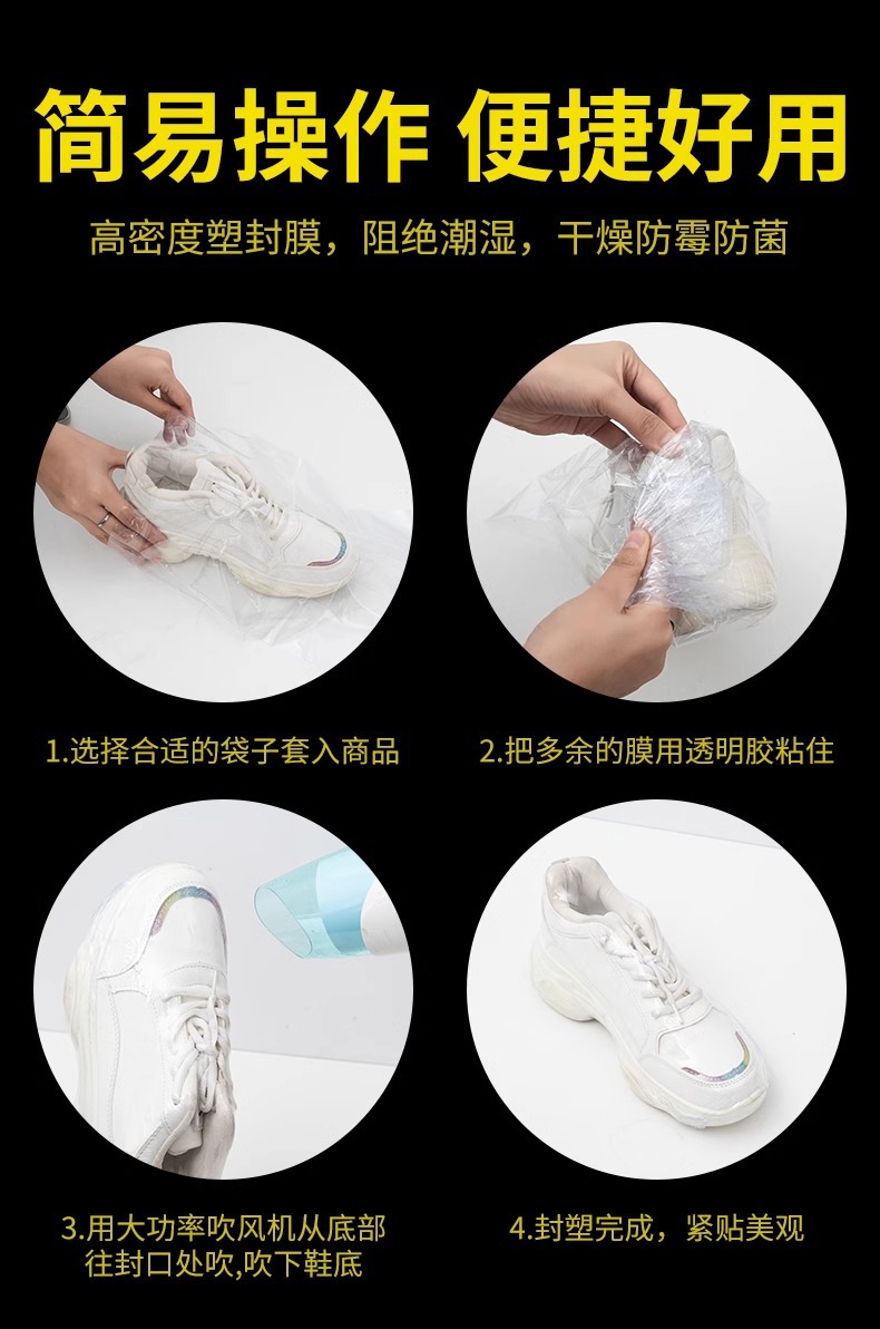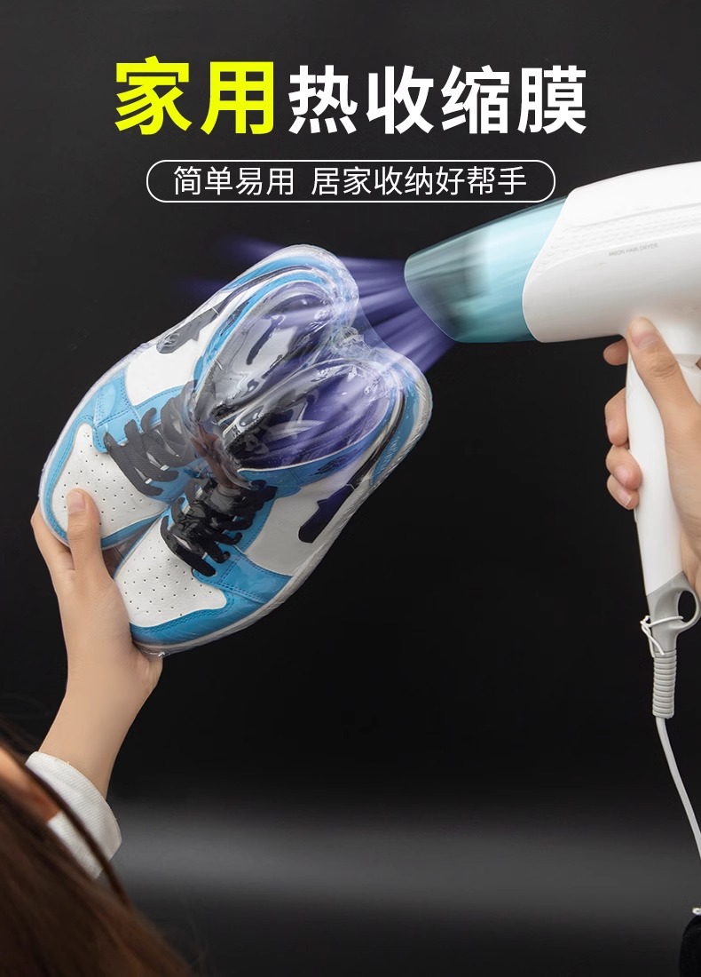 신발 저장 가방 열 수축 필름 방진 방지 산화 신발 커버 안티 노란색 플라스틱 씰 투명 헤어 드라이어 수축 신발 가방 학생