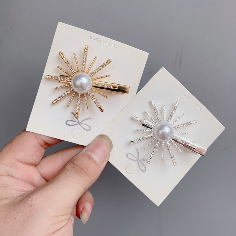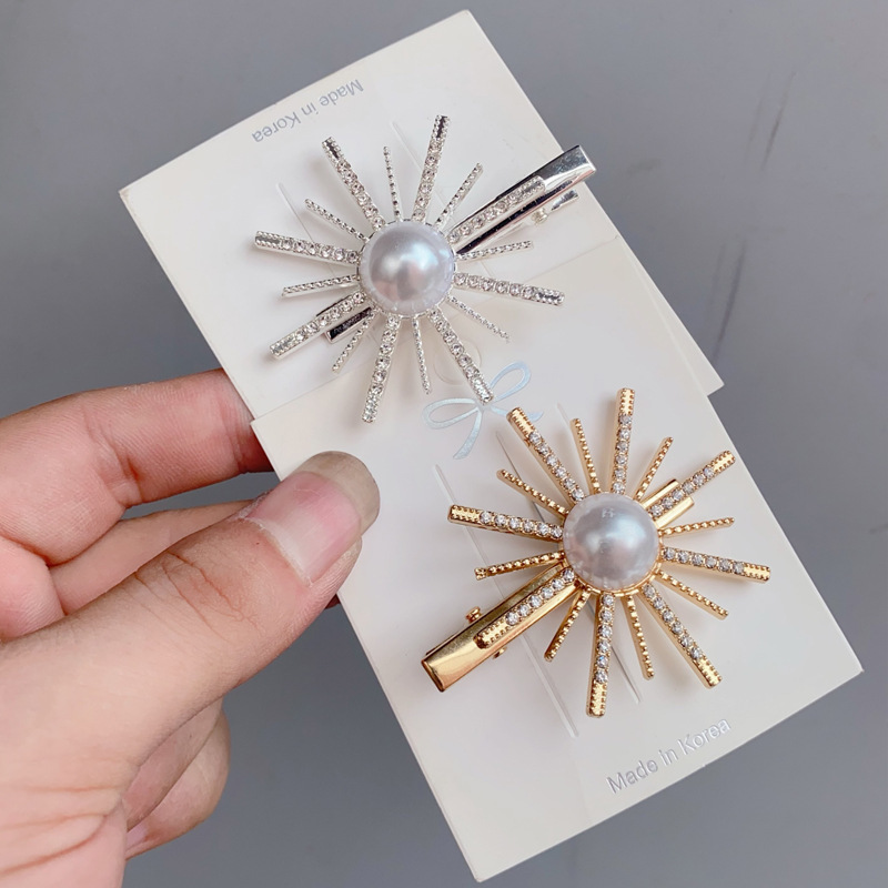 2024 새로운 진주 해바라기 헤어핀 여성 인터넷 연예인 머리 뒤 우아한 머리핀 한국 클립 헤어 액세서리스토어 가기