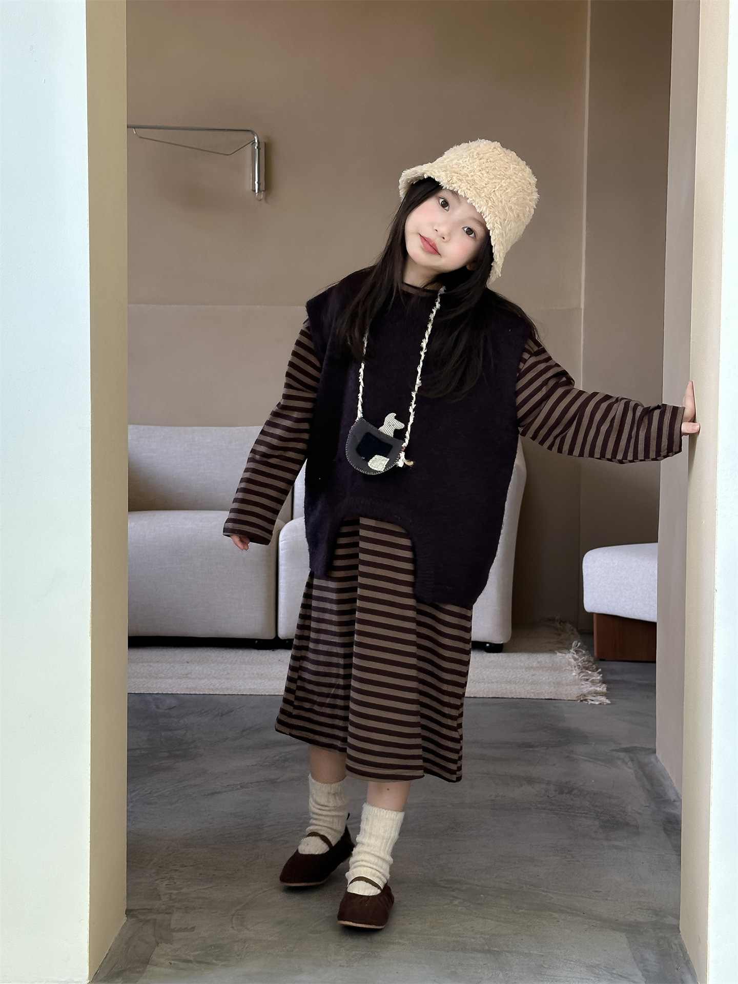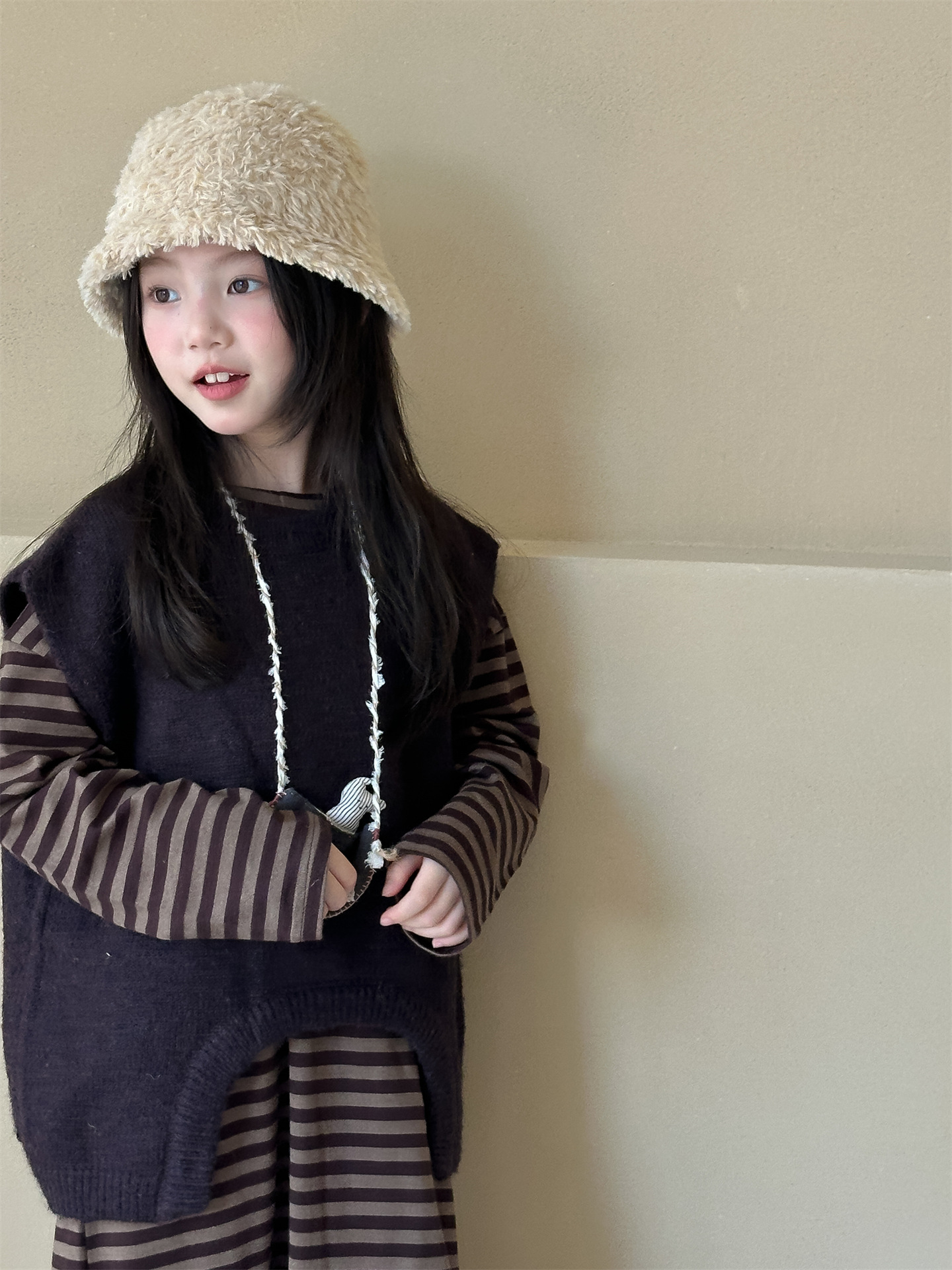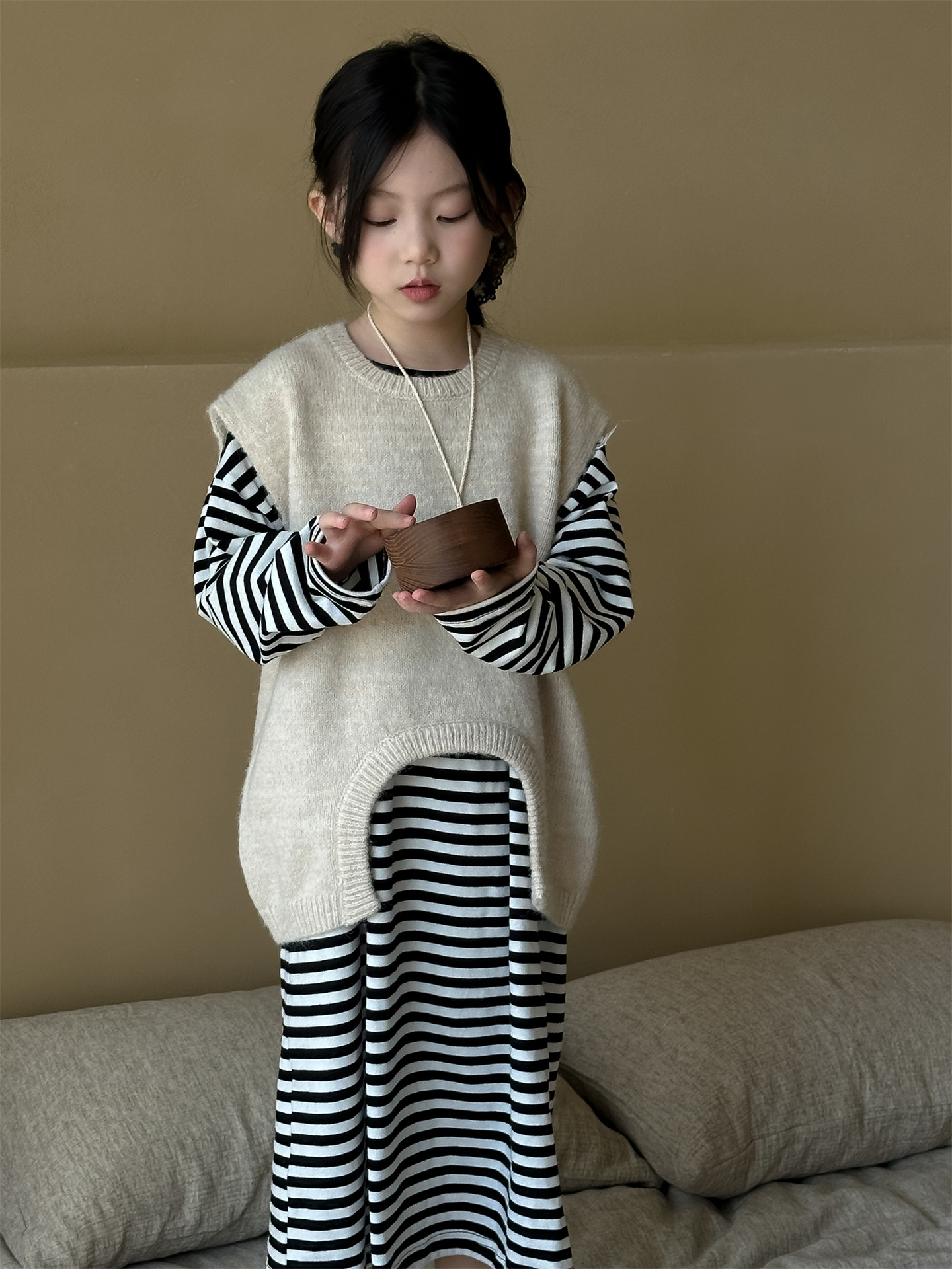 Hua and Xun 한국 아동복 소녀 스웨터 조끼 2024 가을 새 스타일 아기 소녀 다목적 솔리드 컬러 니트 탑스토어 가기