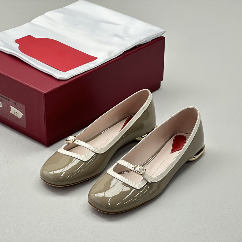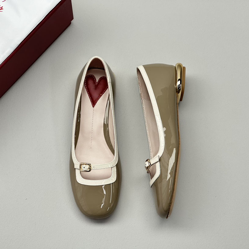프렌치 레트로 신발 2024 여름 중공 벨트 버클 라운드 발가락 플랫 신발 가죽 발레 신발 슬립 온 여성용 신발스토어 가기