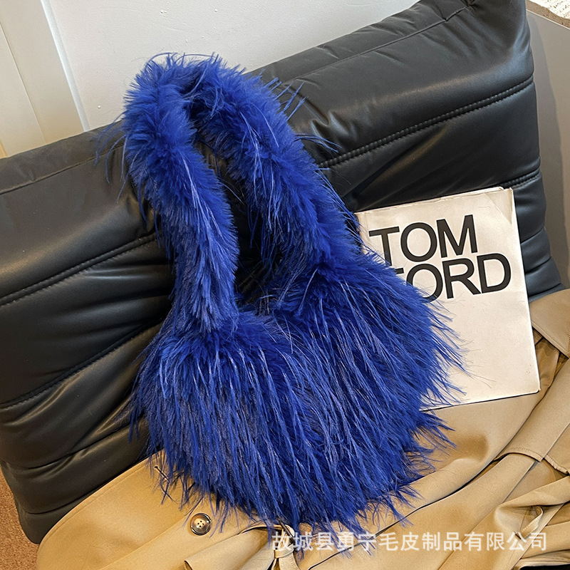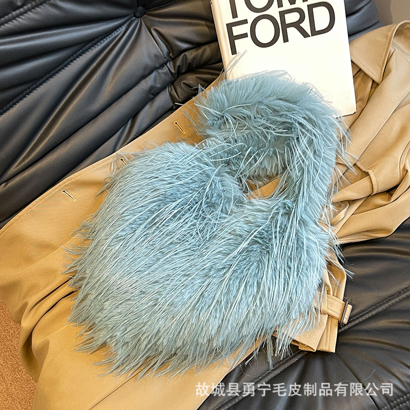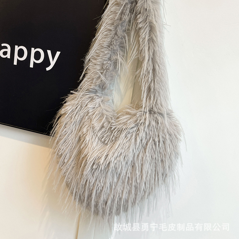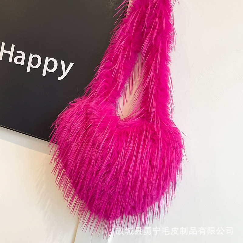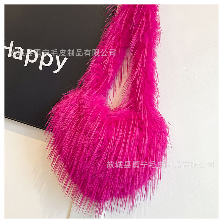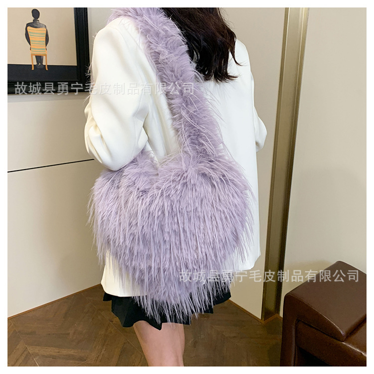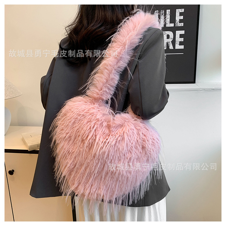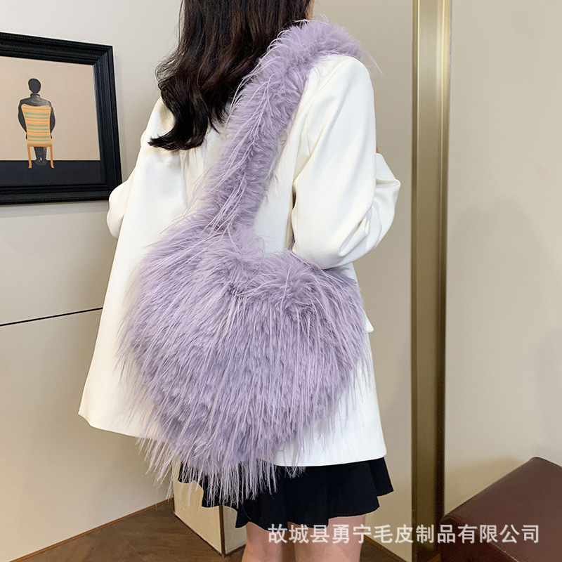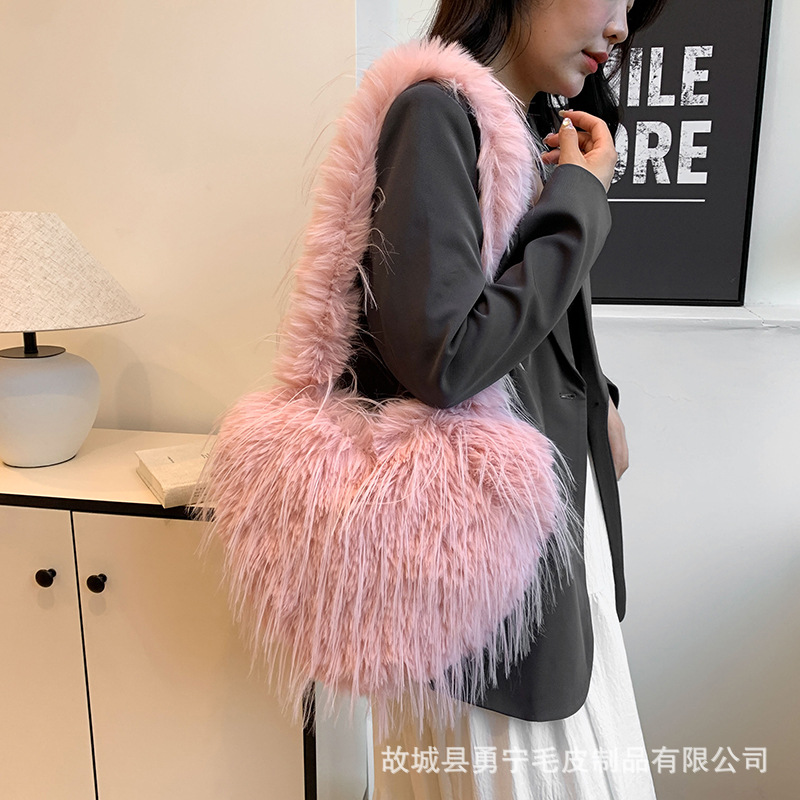 국경 간 2025 가을, 겨울 새로운 스타일 술 하트 모양의 모피 가방 플러시 밀레니엄 핫 소녀 스타일 펑크 대용량 숄더백스토어 가기