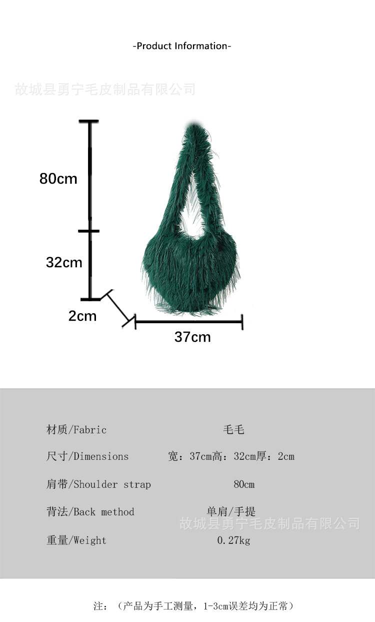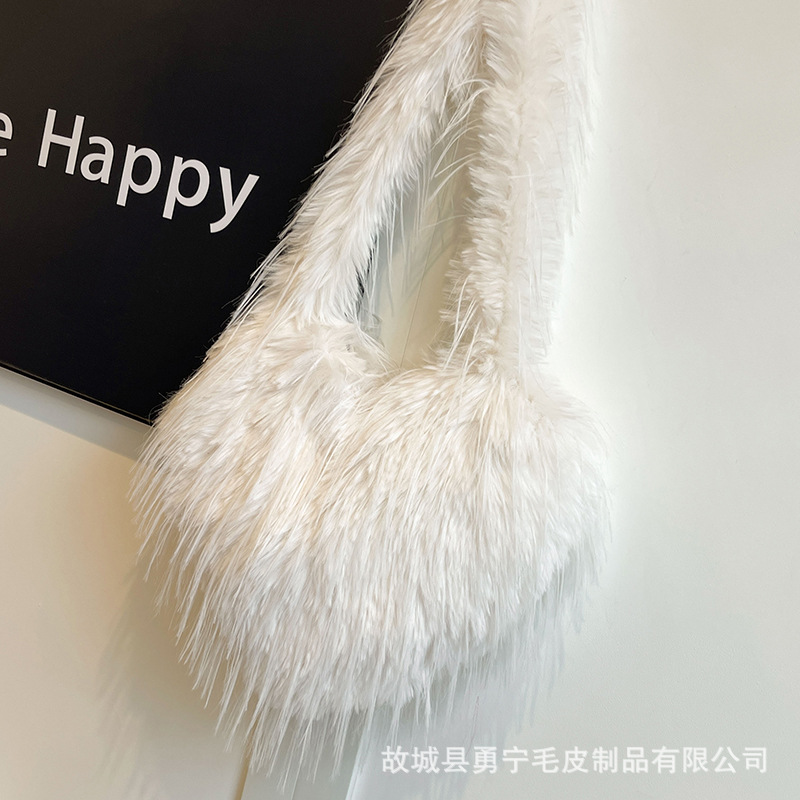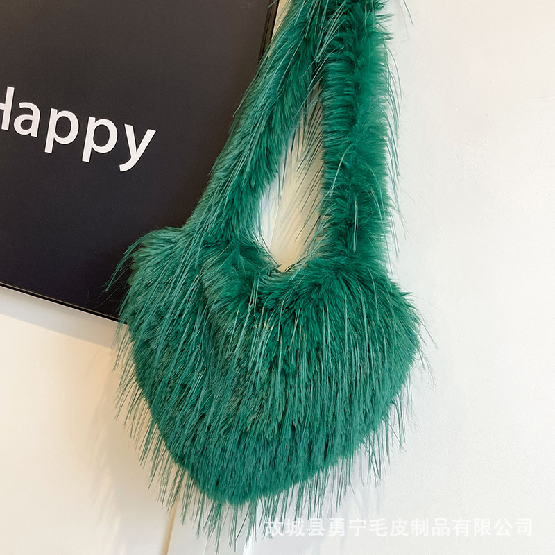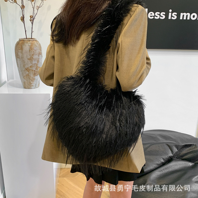국경 간 2025 가을, 겨울 새로운 스타일 술 하트 모양의 모피 가방 플러시 밀레니엄 핫 소녀 스타일 펑크 대용량 숄더백