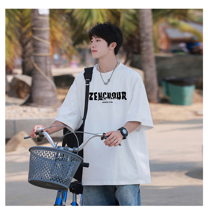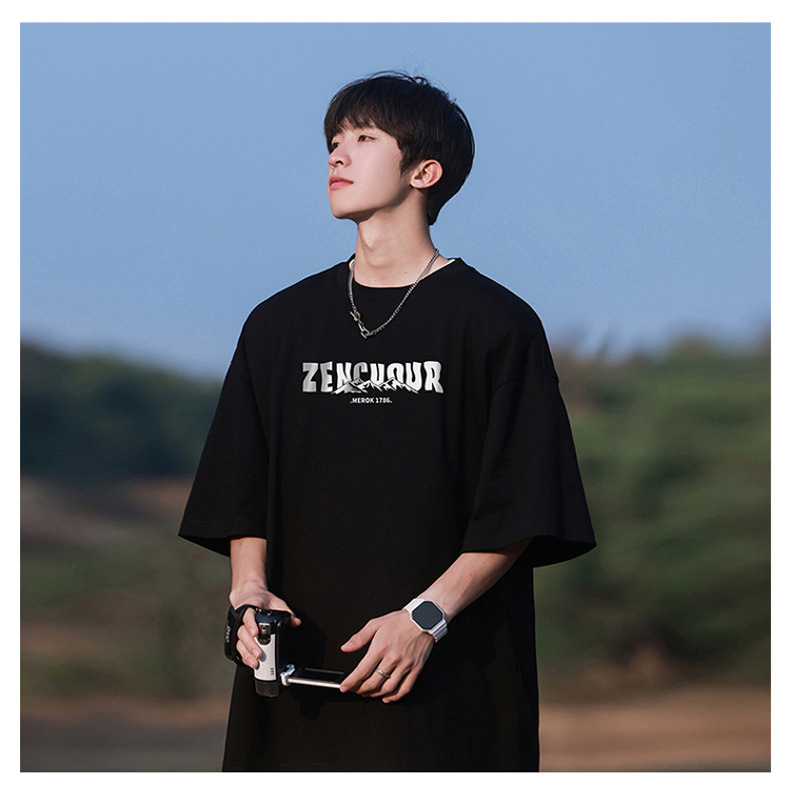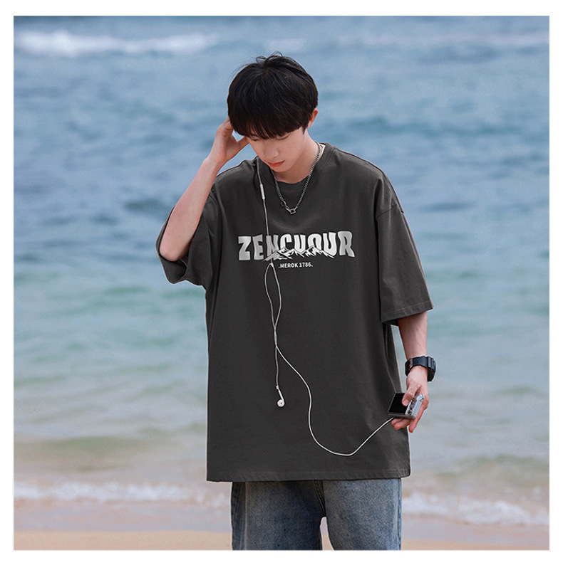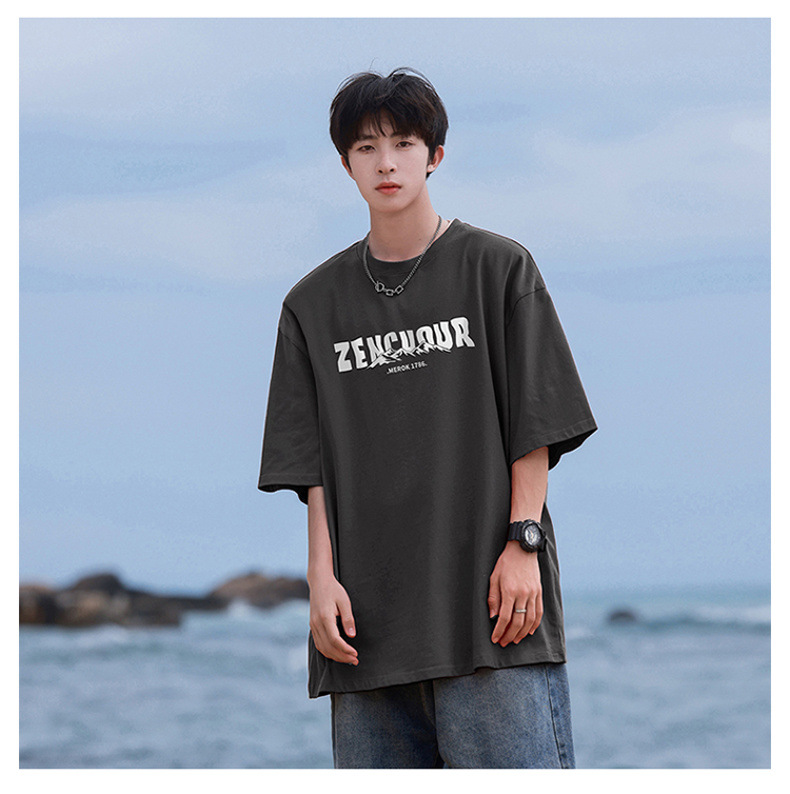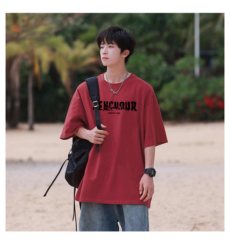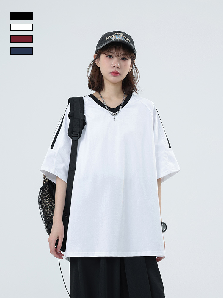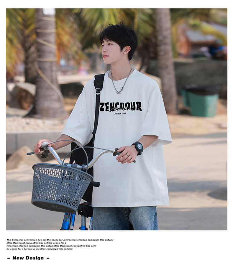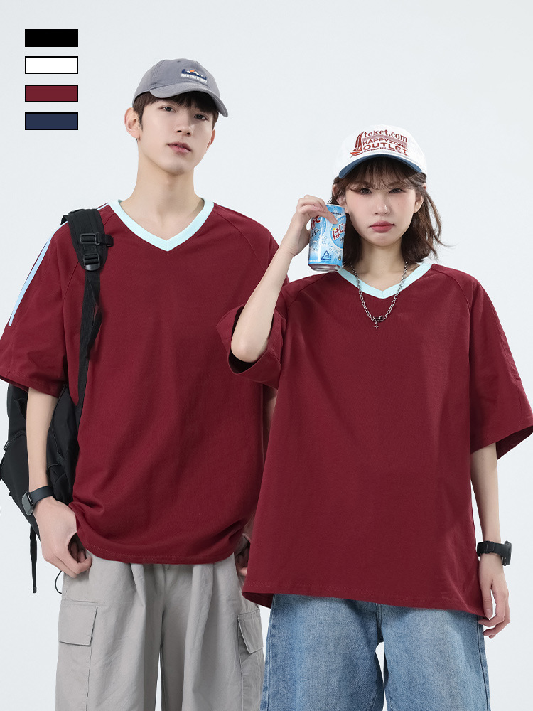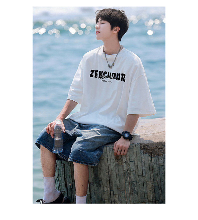 티셔츠 남성용 여름 트렌디 브랜드 남성용 캐주얼 느슨한 십대 반소매 의류 순수한면 작은 V-넥 남성용 티셔츠 탑스토어 가기