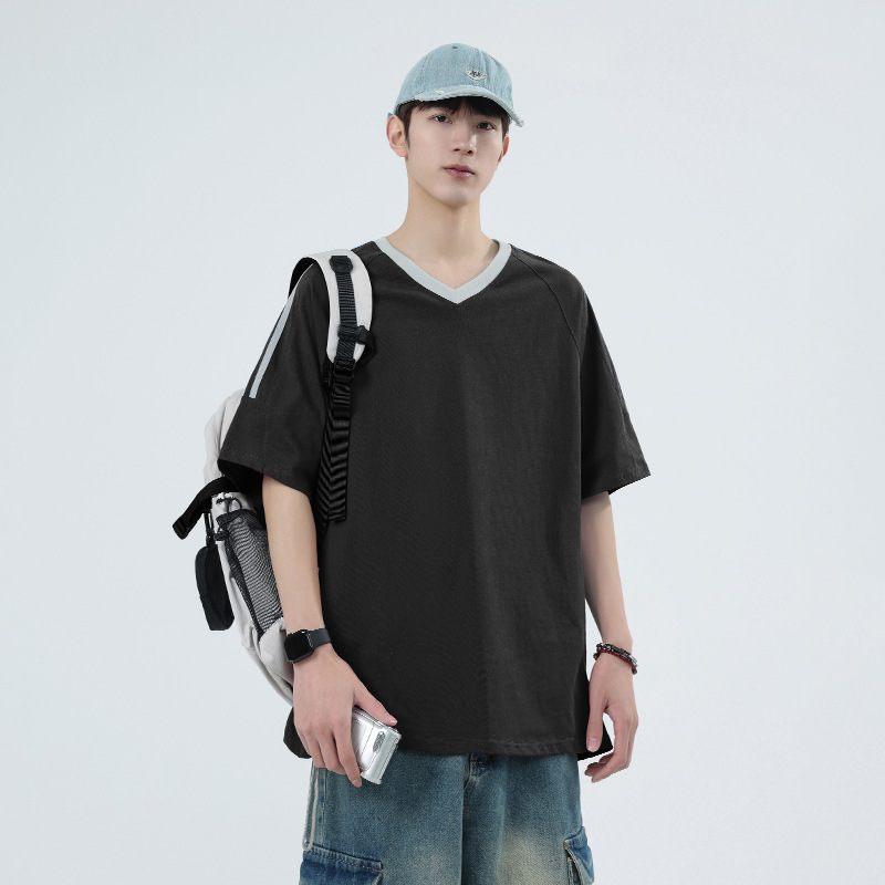 티셔츠 남성용 여름 트렌디 브랜드 남성용 캐주얼 느슨한 십대 반소매 의류 순수한면 작은 V-넥 남성용 티셔츠 탑