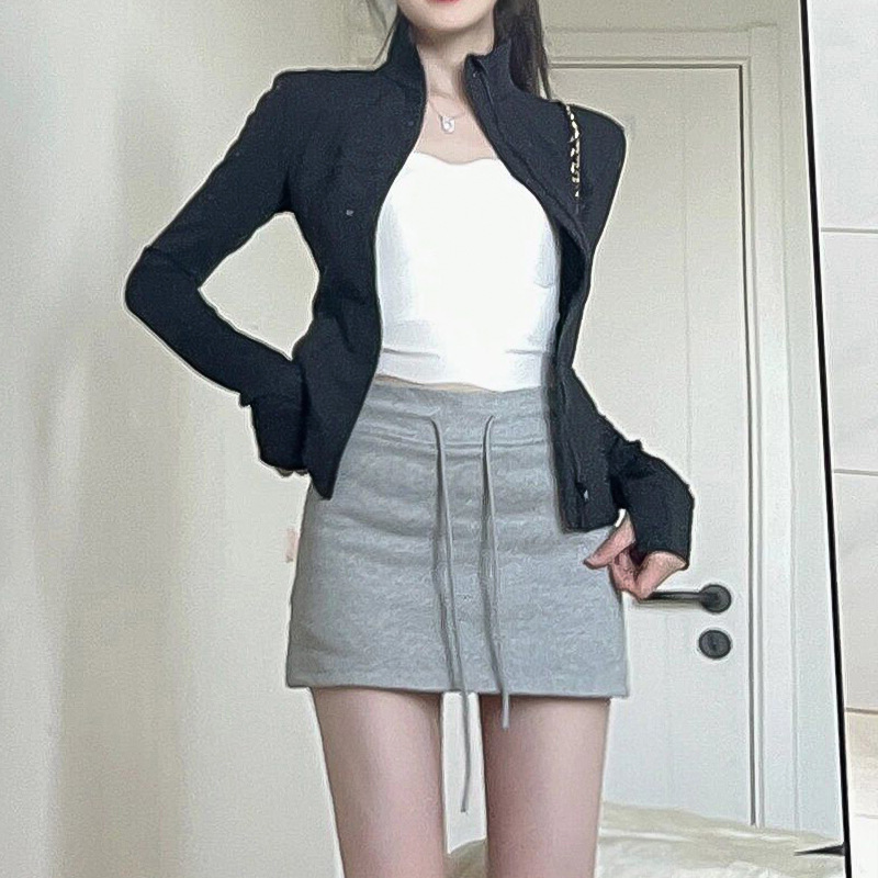 티몰 틱톡 퀄리티 그레이 A라인 스커트 캐주얼 하프 스커트 여성용 2025 핫걸 패션 스포츠 힙허깅 숏 스커트