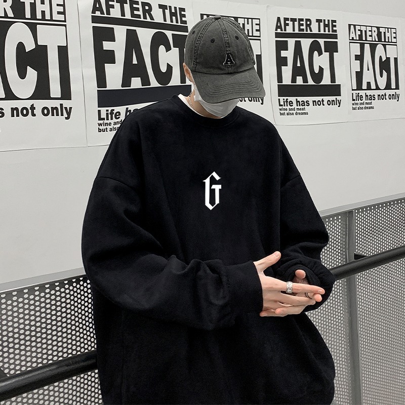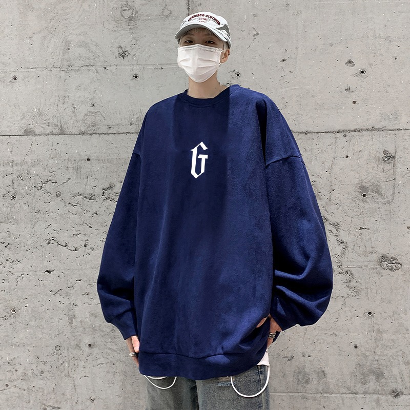 300g 헤비 크루 넥 스웨이드 스웨트 셔츠 남성 봄과 가을 패션 브랜드 미국 느슨한 긴 소매 티셔츠 캐주얼 재킷스토어 가기