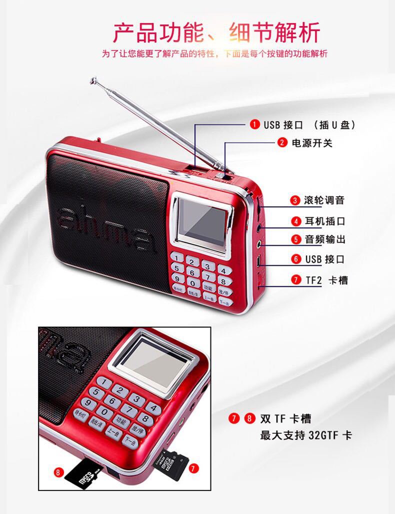 Ahma New 888 Aihua 업그레이드 된 카드 스피커 MP3 음악 플레이어 노인 확성기 라디오