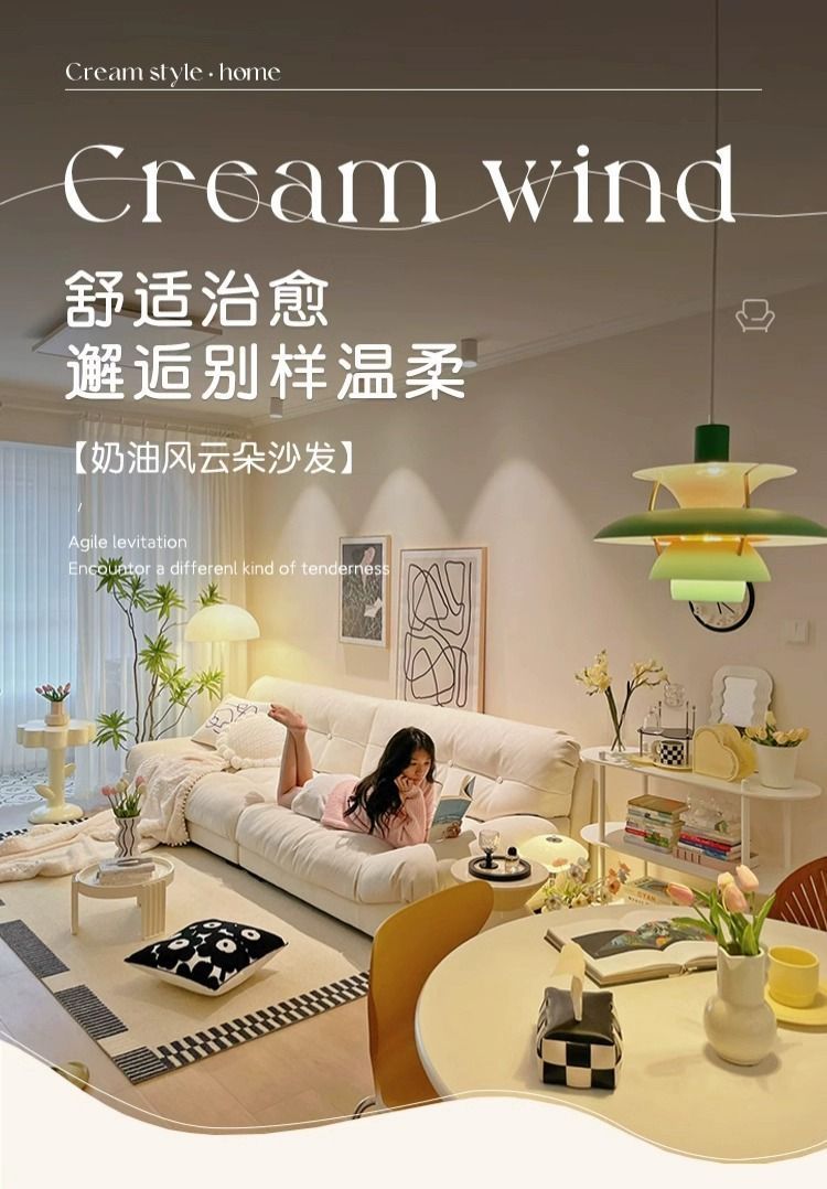 클라우드 소파 간단한 현대 거실 가정용 작은 아파트 더블 캐주얼 라이트 럭셔리 인터넷 인기 크림 스타일 패브릭 소파