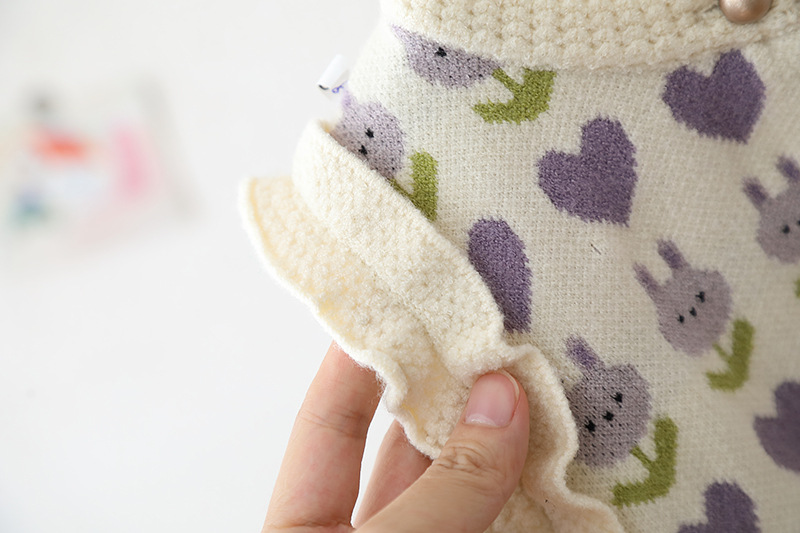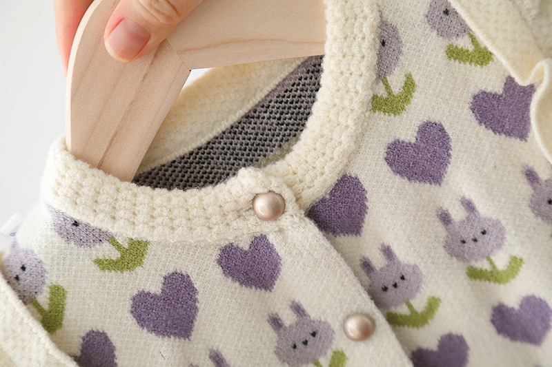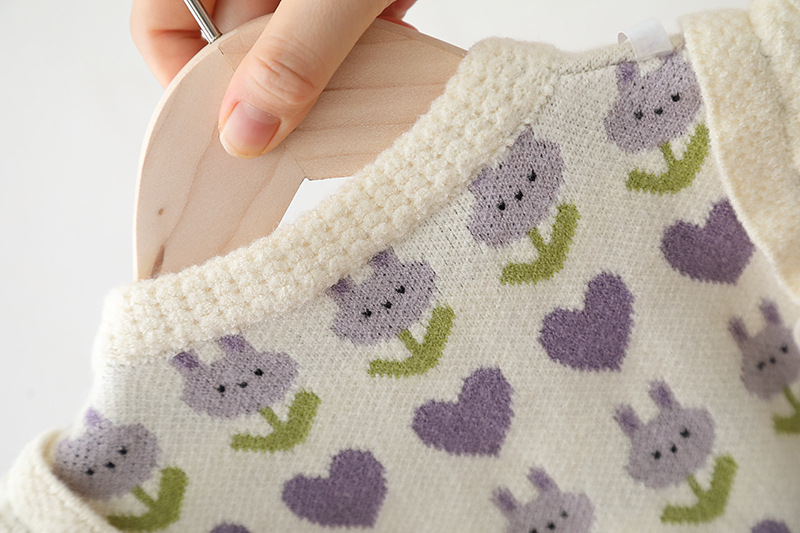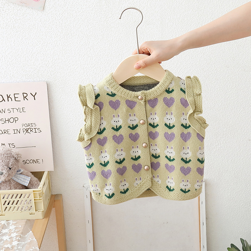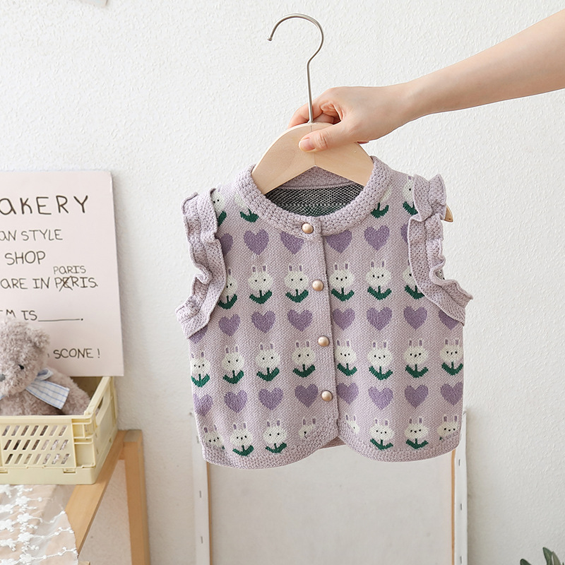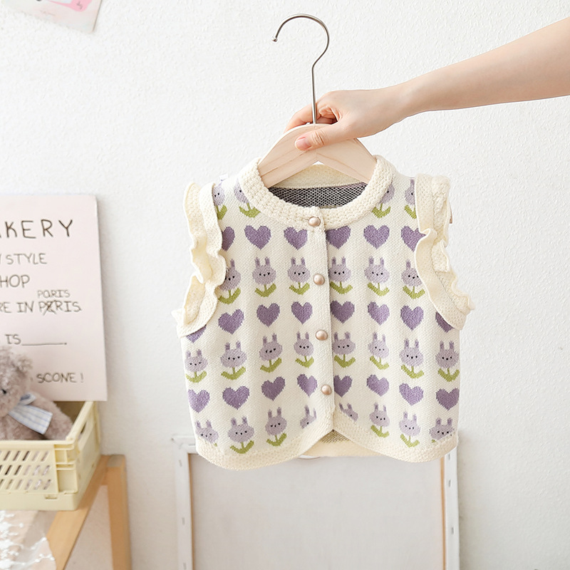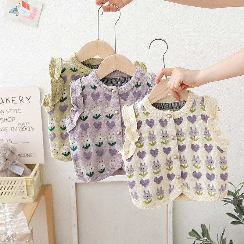 2024 년 어린이 스웨터 가을과 겨울 소녀 단색 자카드 니트 양복 조끼 귀 가장자리의 새로운 한국어 버전의 세대