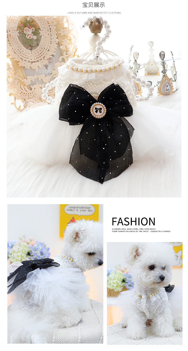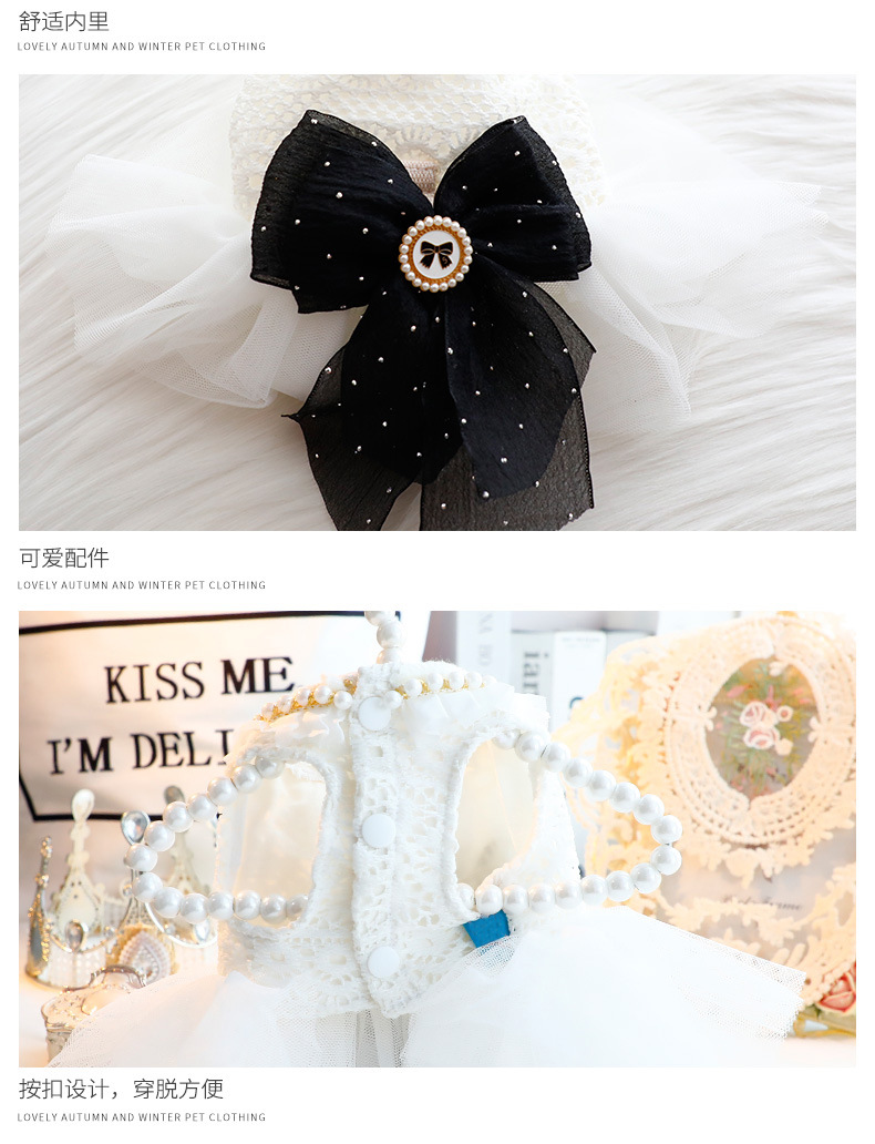 개 옷 봄과 가을 고양이 공주 원피스 견인 5 번 진주 결혼식 원피스 작은 개 테디 애완 동물 5938
