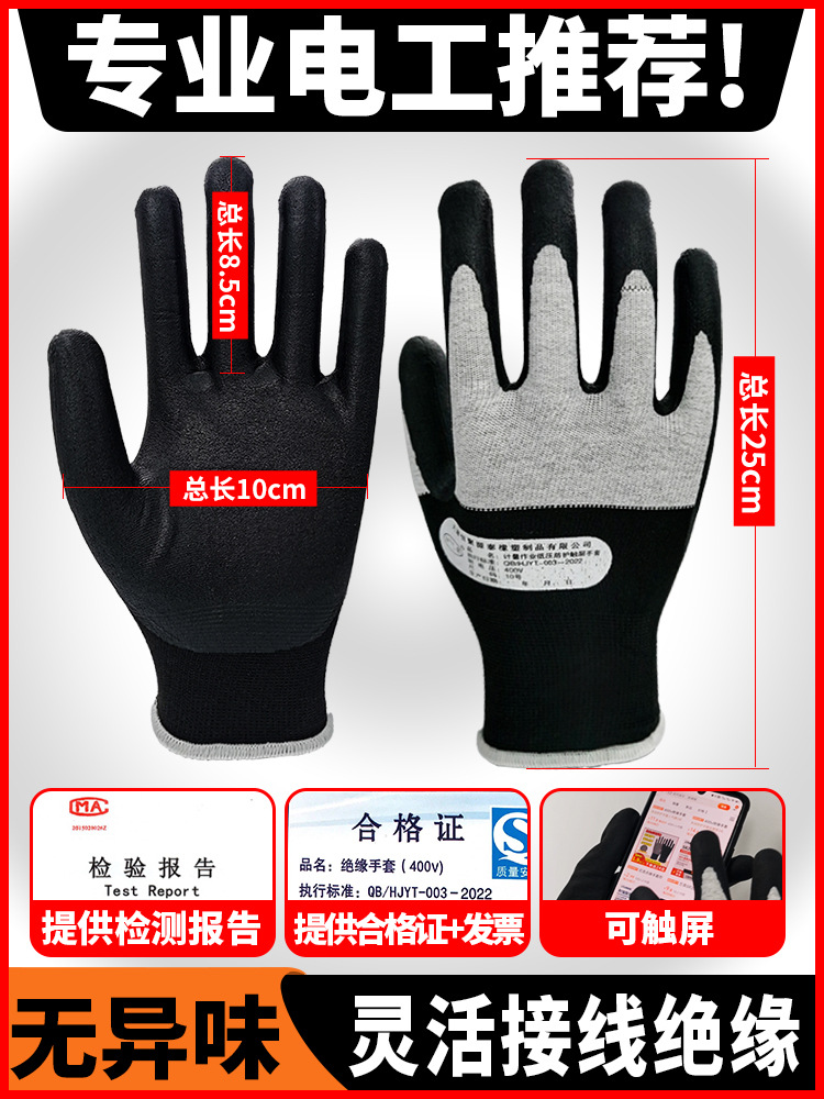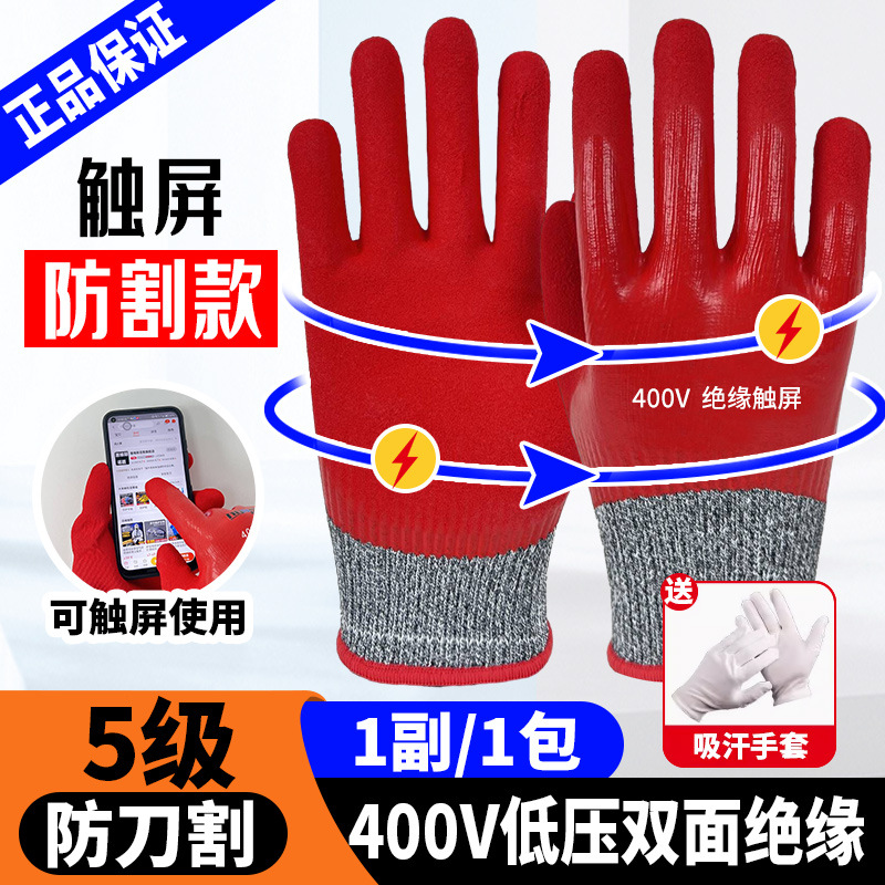 • 400V 저전압 양면 절연 장갑 1쌍 [터치스크린 절단 방지 모델]