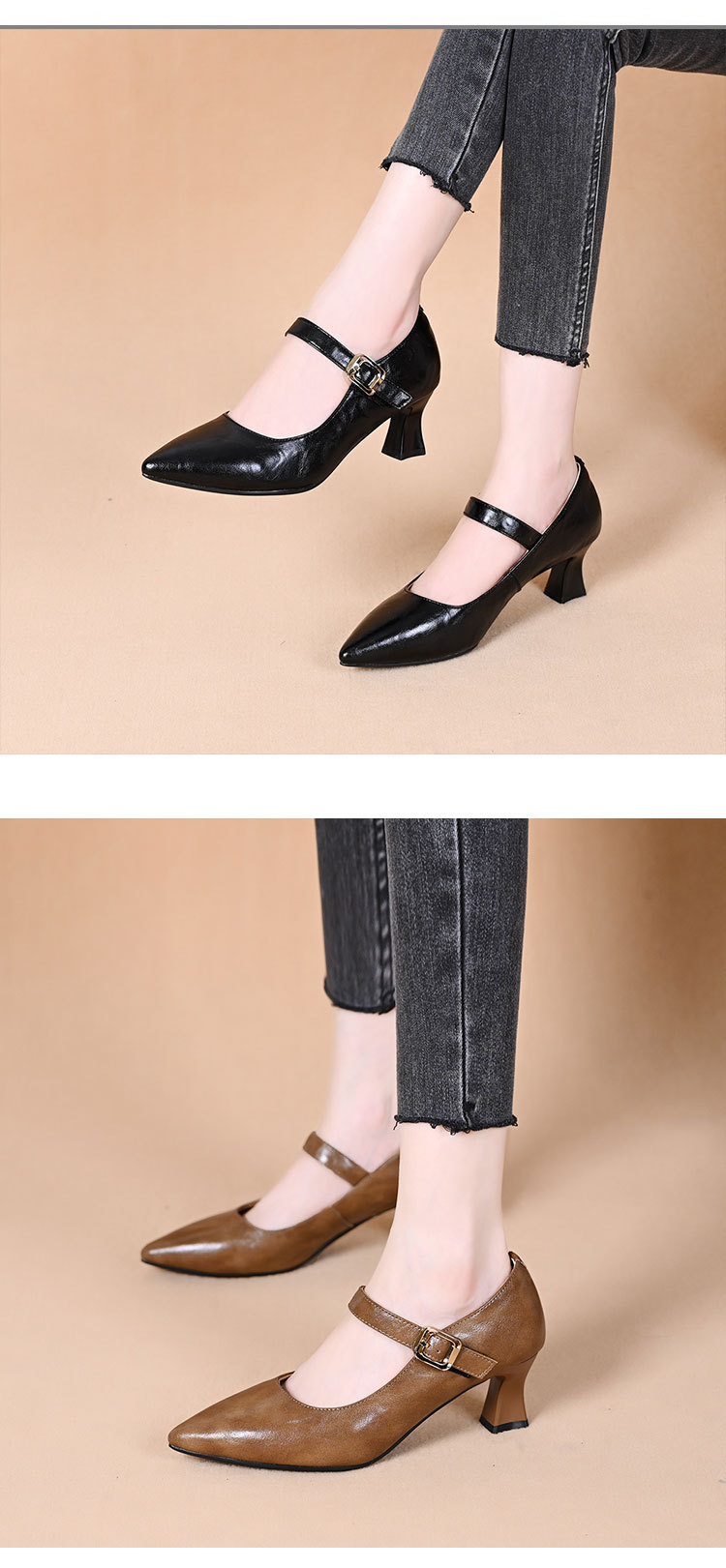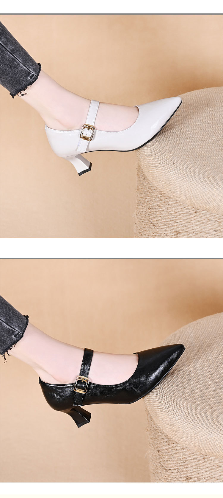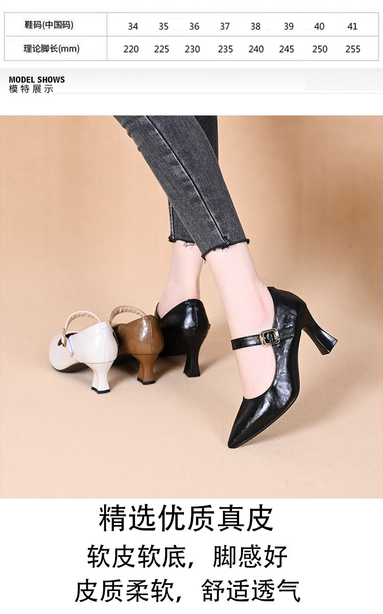 뾰족한 하이힐 여성 2024 년 봄과 여름 새로운 도착 싱글 신발, 청키 힐을 가진 전문 통근자 여성을위한 우아한 작업 신발스토어 가기