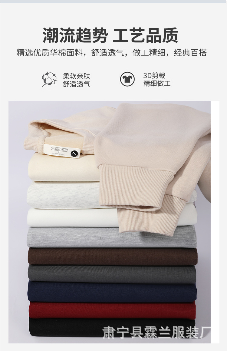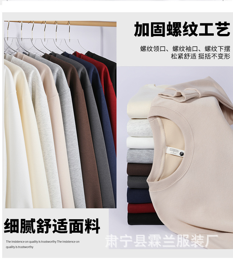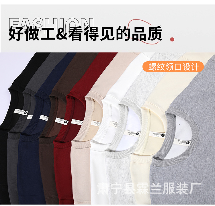 헤비 코튼 320g 단색 둥근 목 어깨 스웨터 맞춤형 남성용 느슨한 캐주얼 따뜻한 코트 긴 소매 기본 셔츠스토어 가기