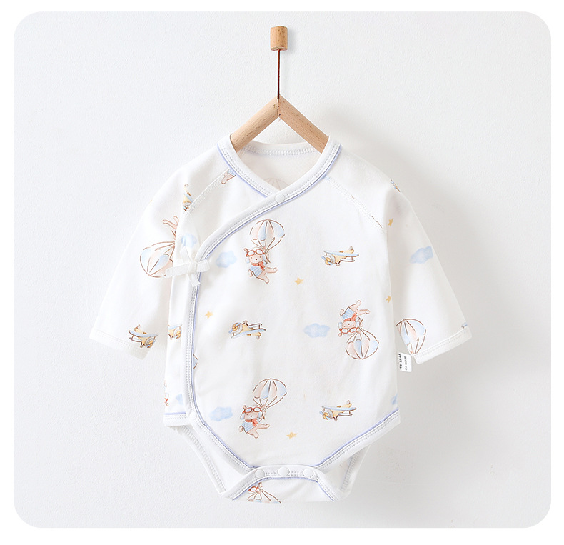 아기옷, A급 봄, 가을 순면 신생아옷, 남녀공용 베이스 잠옷, 긴팔 삼각 롬퍼스