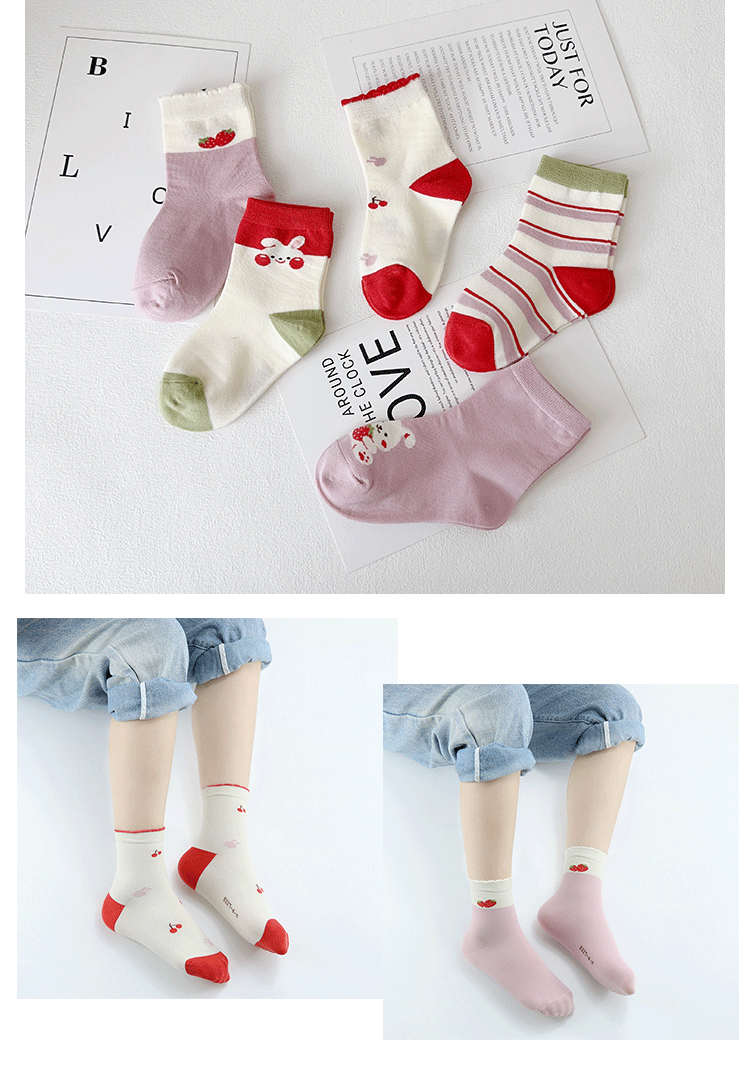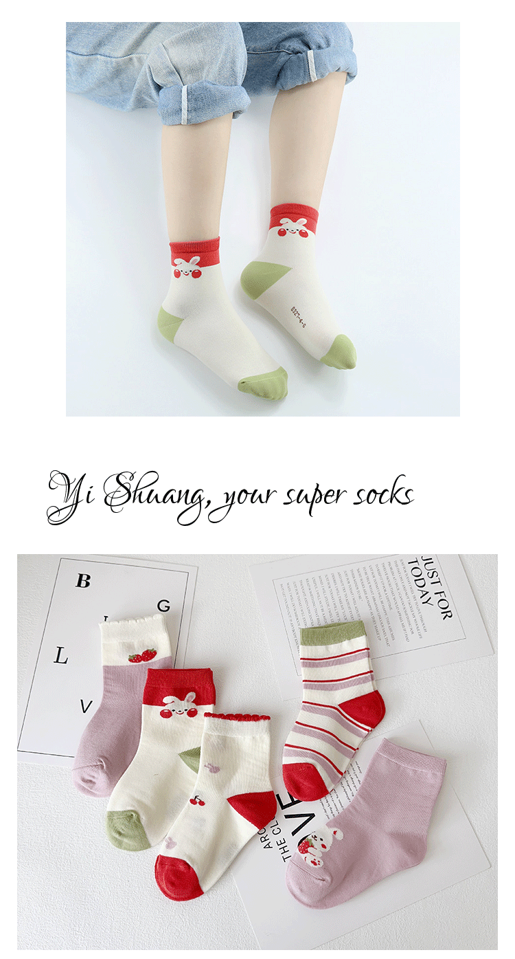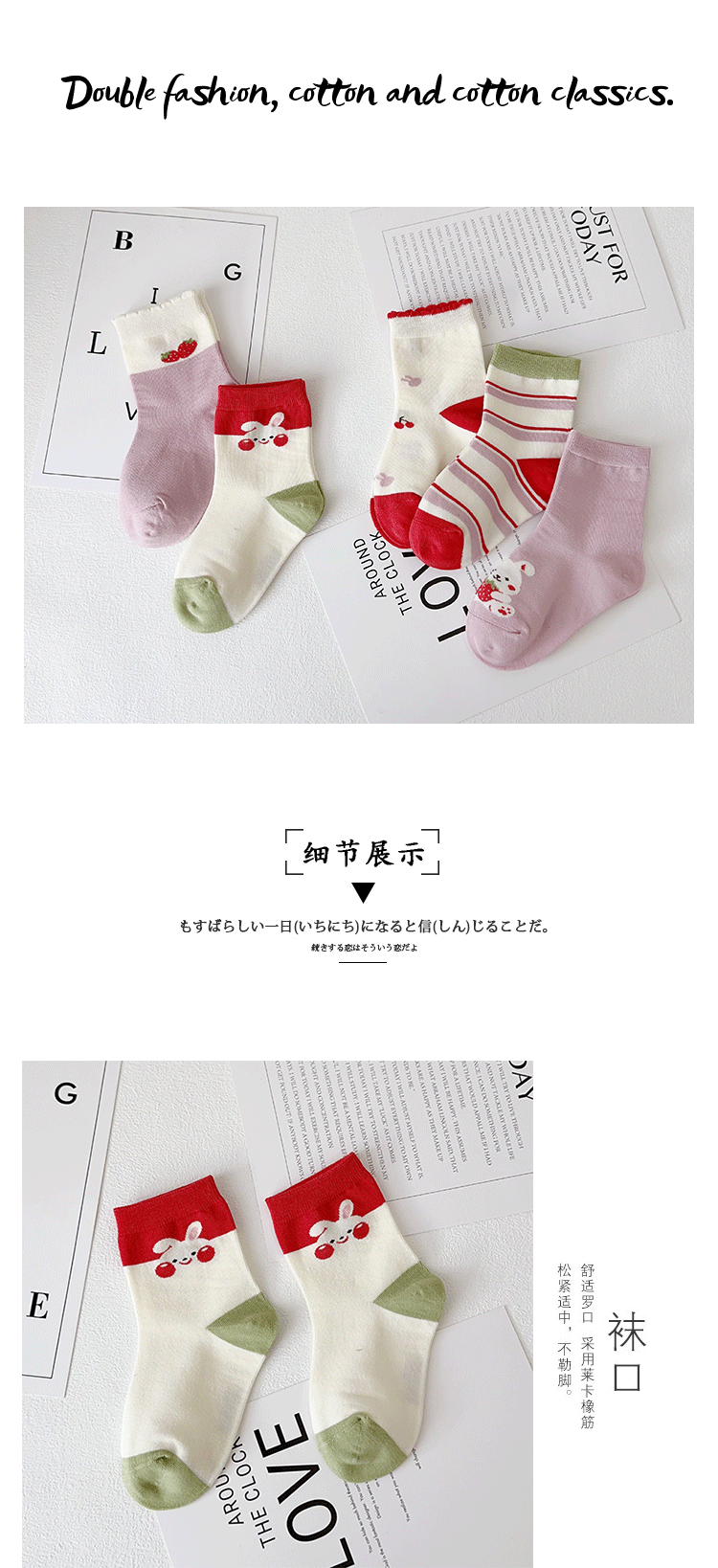 이 쌍 어린이 양말 가을과 겨울 새로운 만화 토끼 중간 길이 양말 빗질면 한국 스타일 소녀 유행 양말 학생 양말