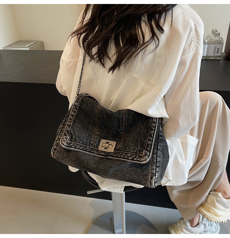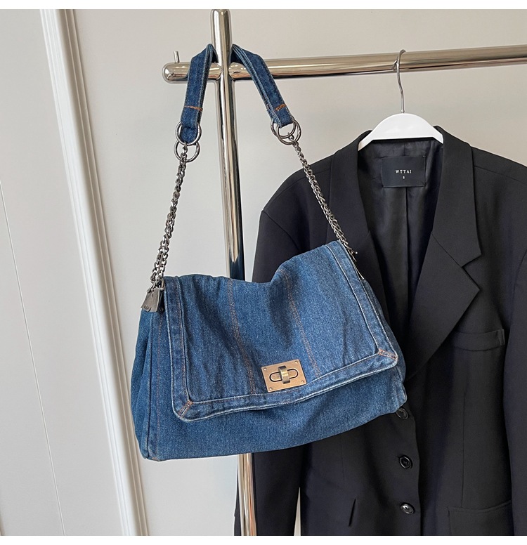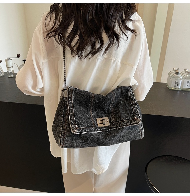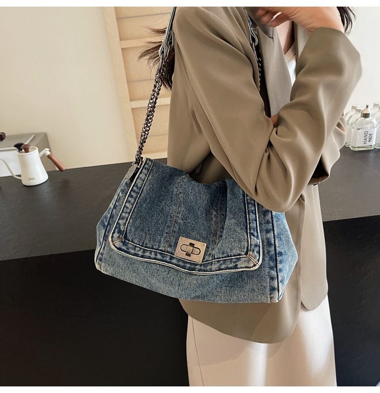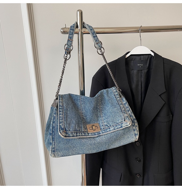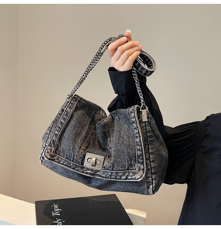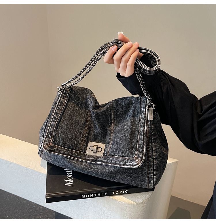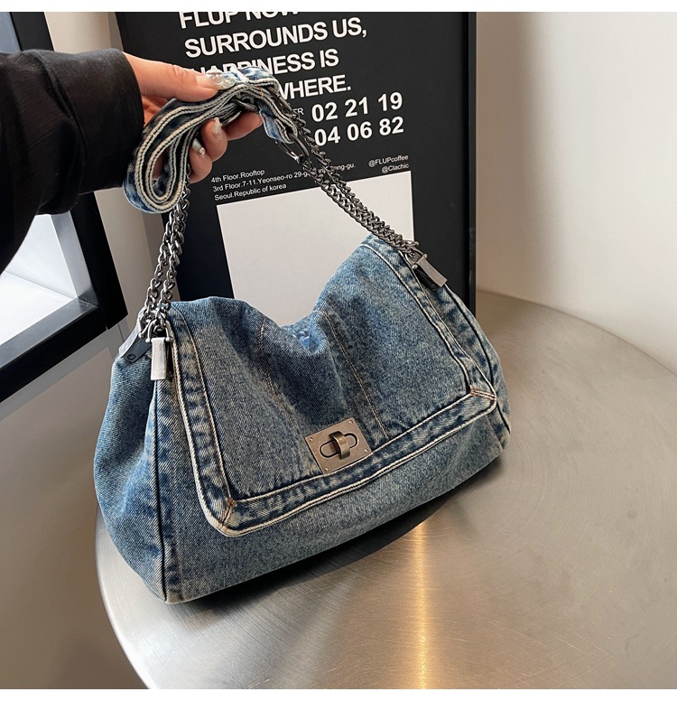 국경 간 고민 데님 토트 백 여성의 2024 새로운 유행 복고풍 대용량 통근 어깨 가방스토어 가기