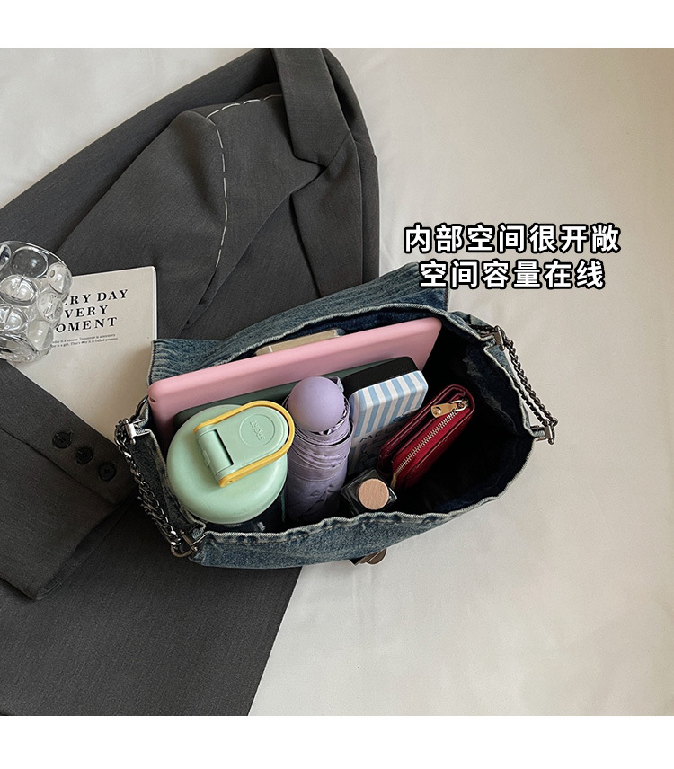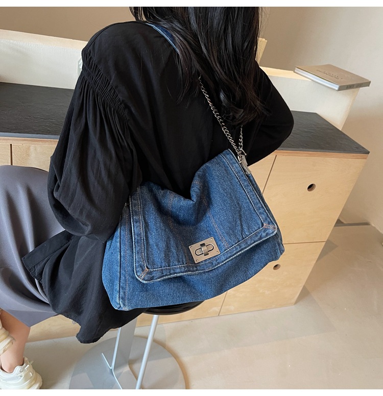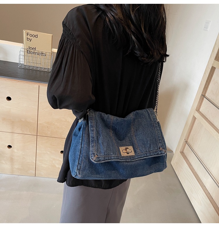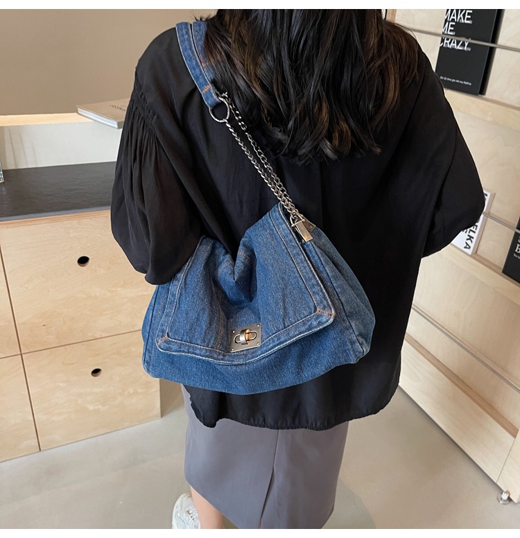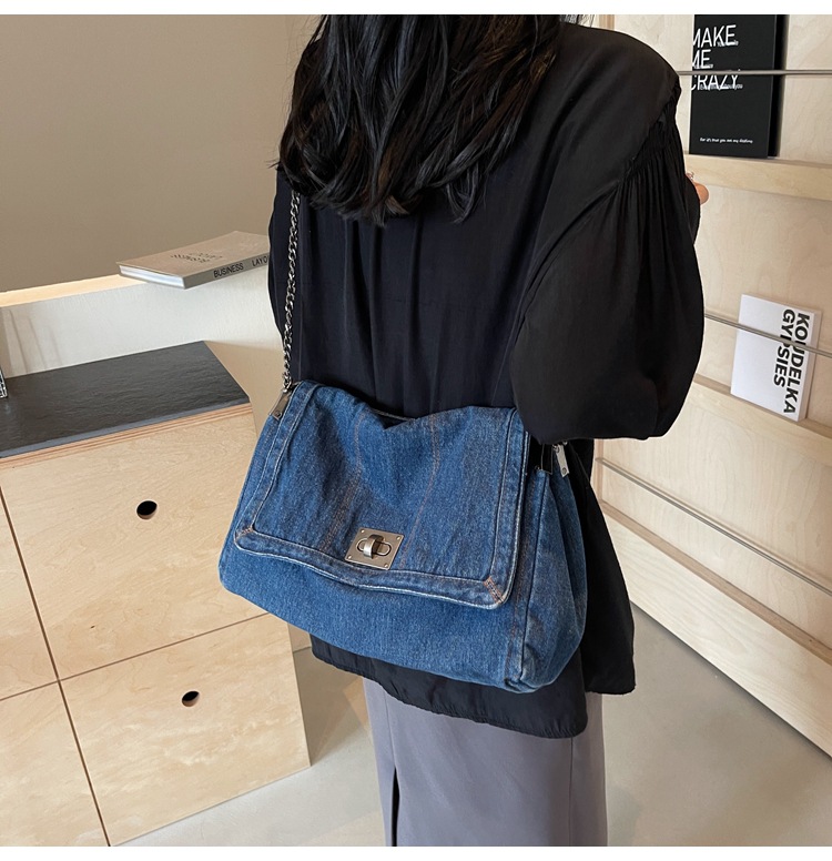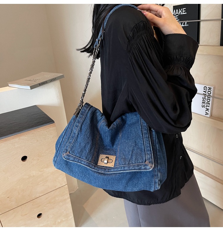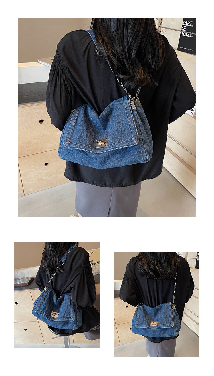 국경 간 고민 데님 토트 백 여성의 2024 새로운 유행 복고풍 대용량 통근 어깨 가방스토어 가기