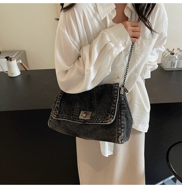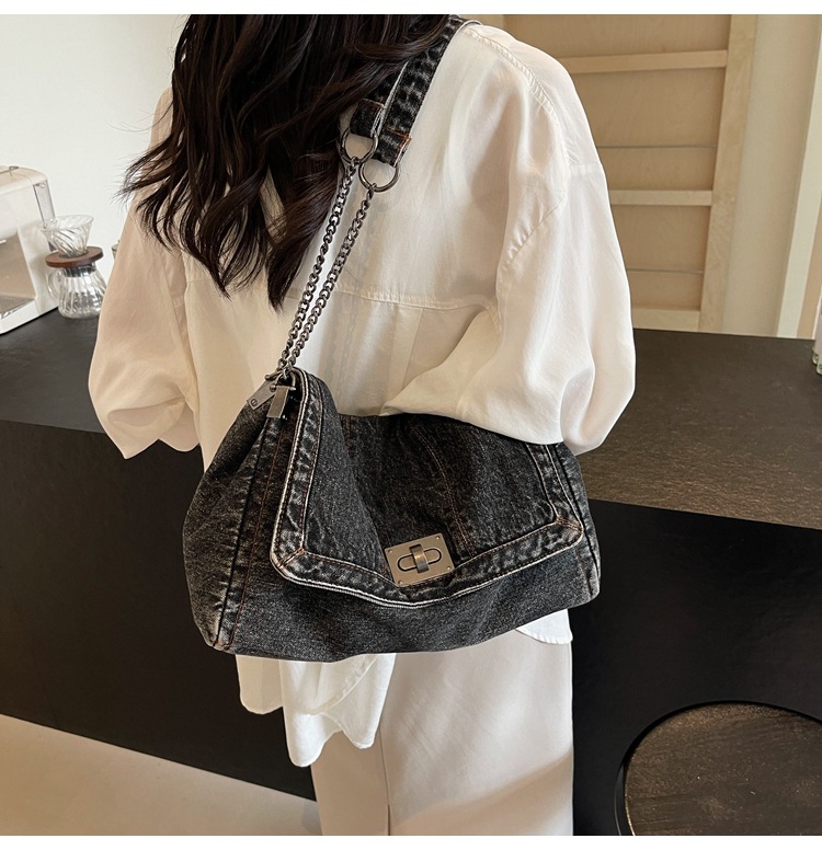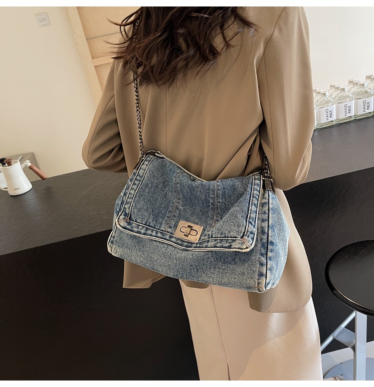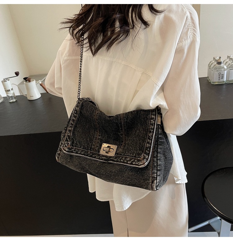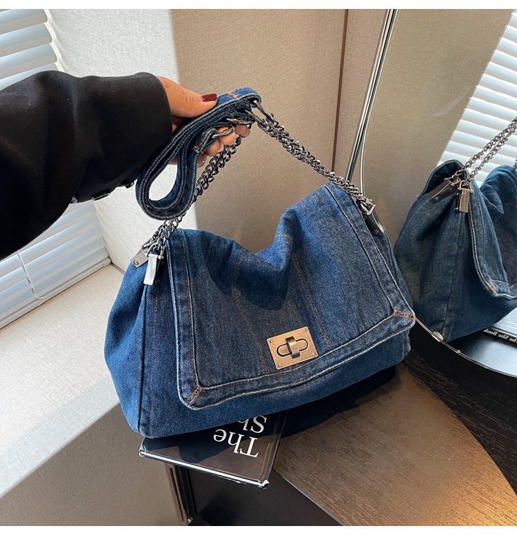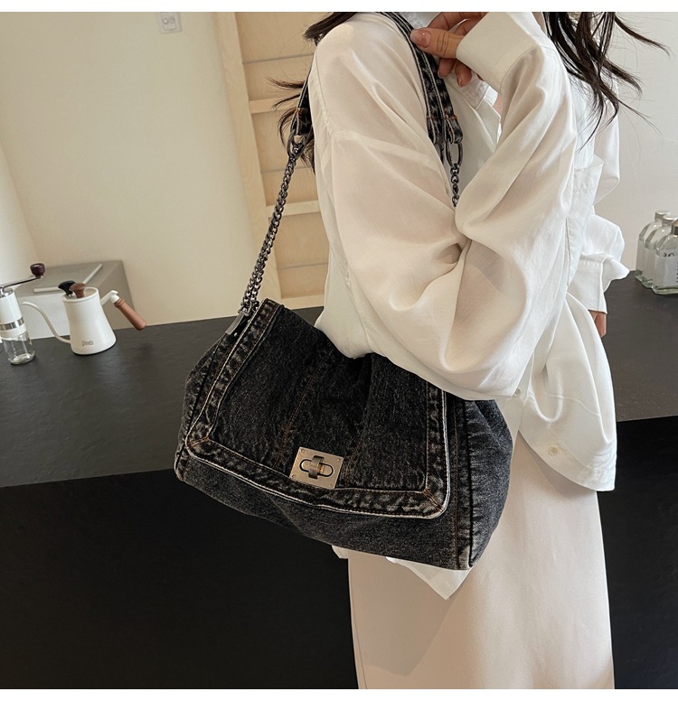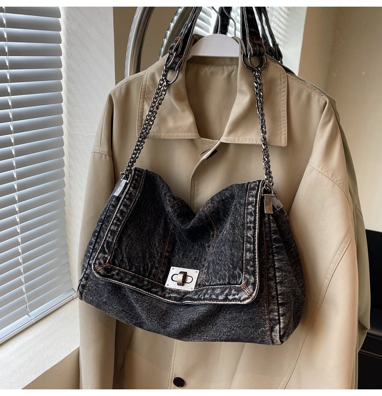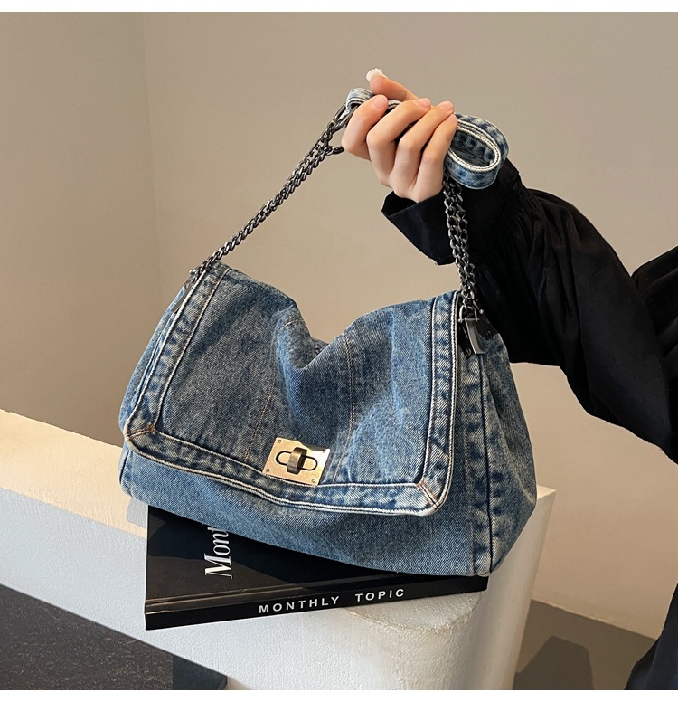 국경 간 고민 데님 토트 백 여성의 2024 새로운 유행 복고풍 대용량 통근 어깨 가방