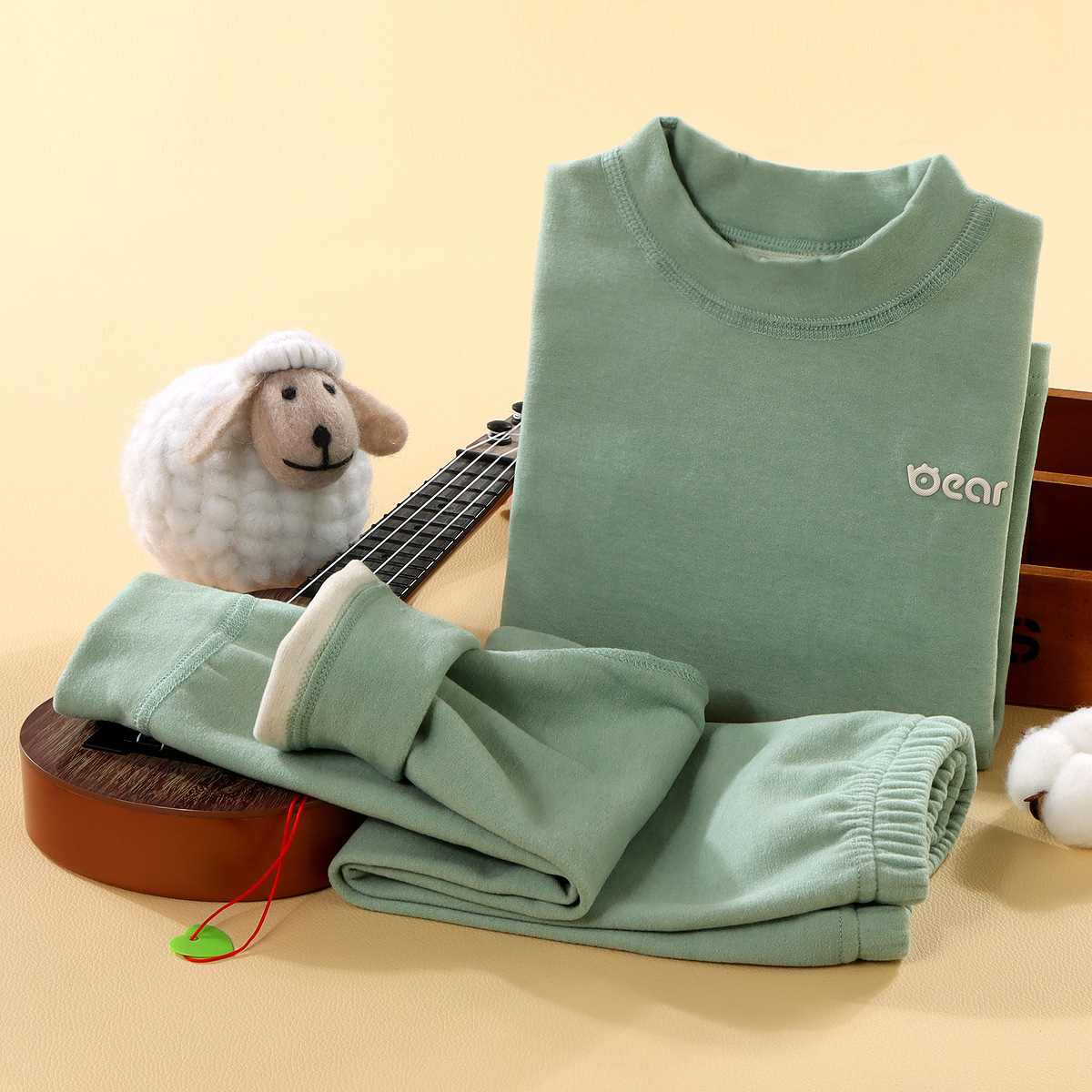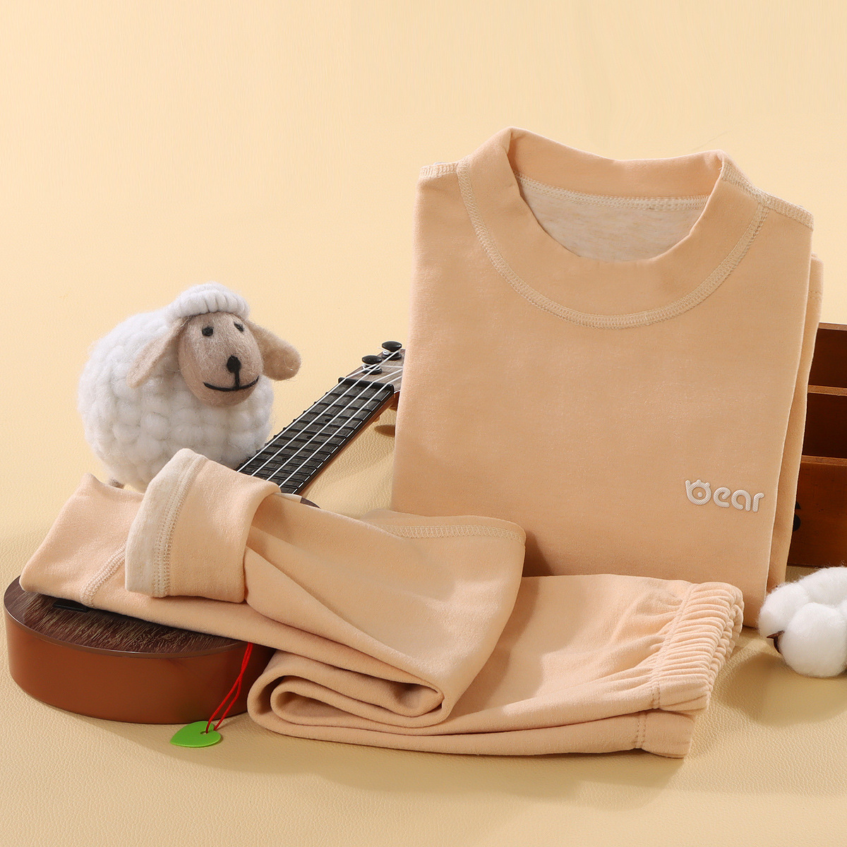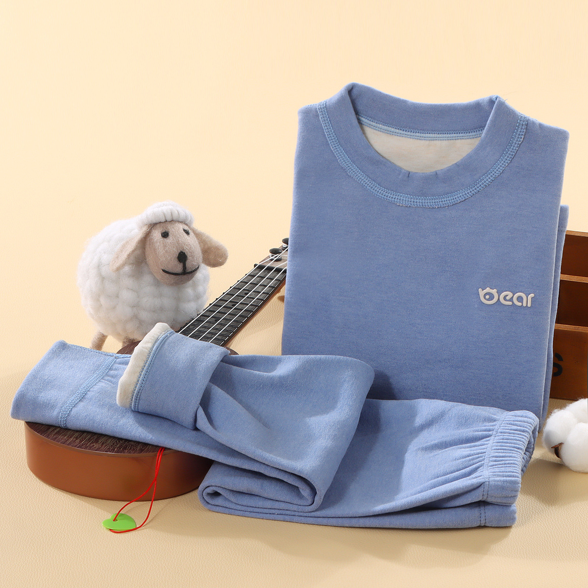 가을과 겨울 가을 옷 가을 바지 파자마를 세트 2024 새로운 양면 울 실크 어린이 열 속옷스토어 가기