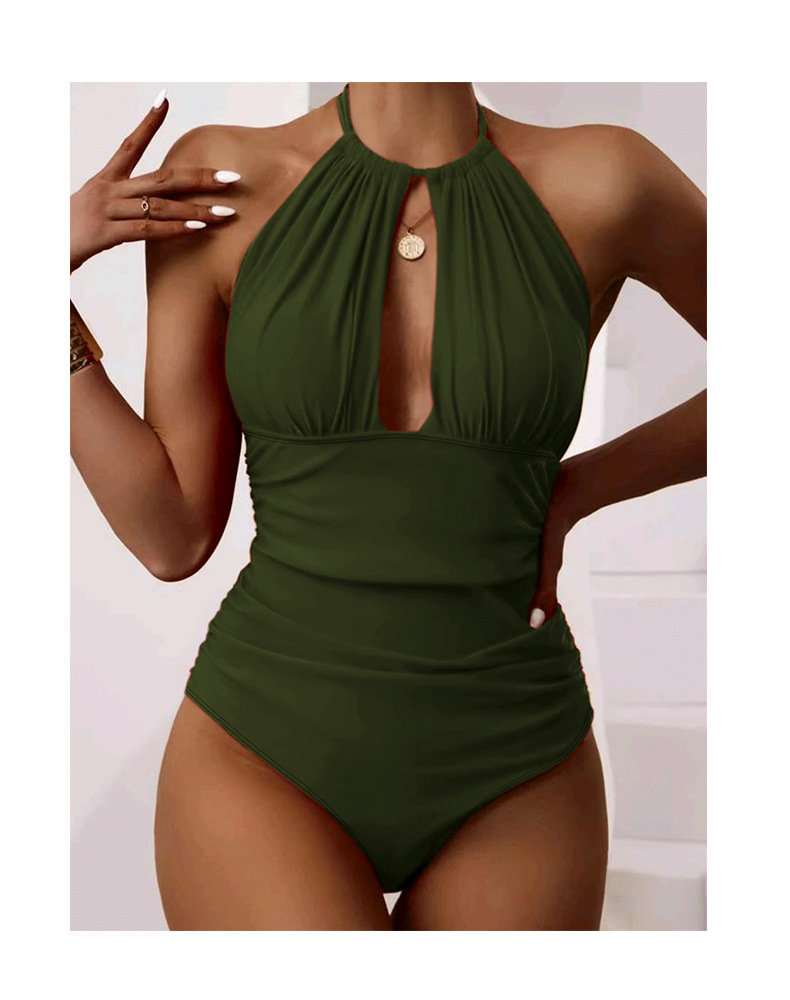 새로운 하이 엔드 패션 섹시한 원피스 교수형 목 거품 온천 수영복 여성
