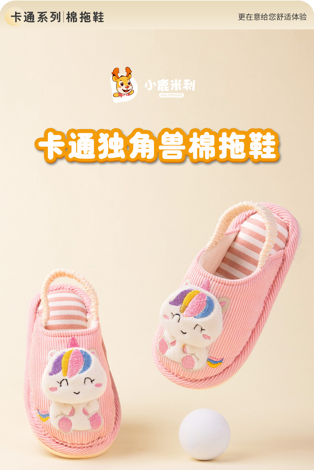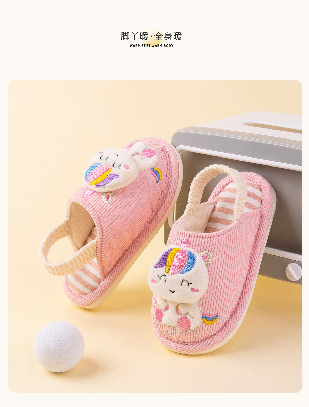 가을과 겨울 어린이 면화 도매 귀여운 만화 유니콘 아기 슬리퍼 실내 및 야외 따뜻한 미끄럼 면화 슬리퍼