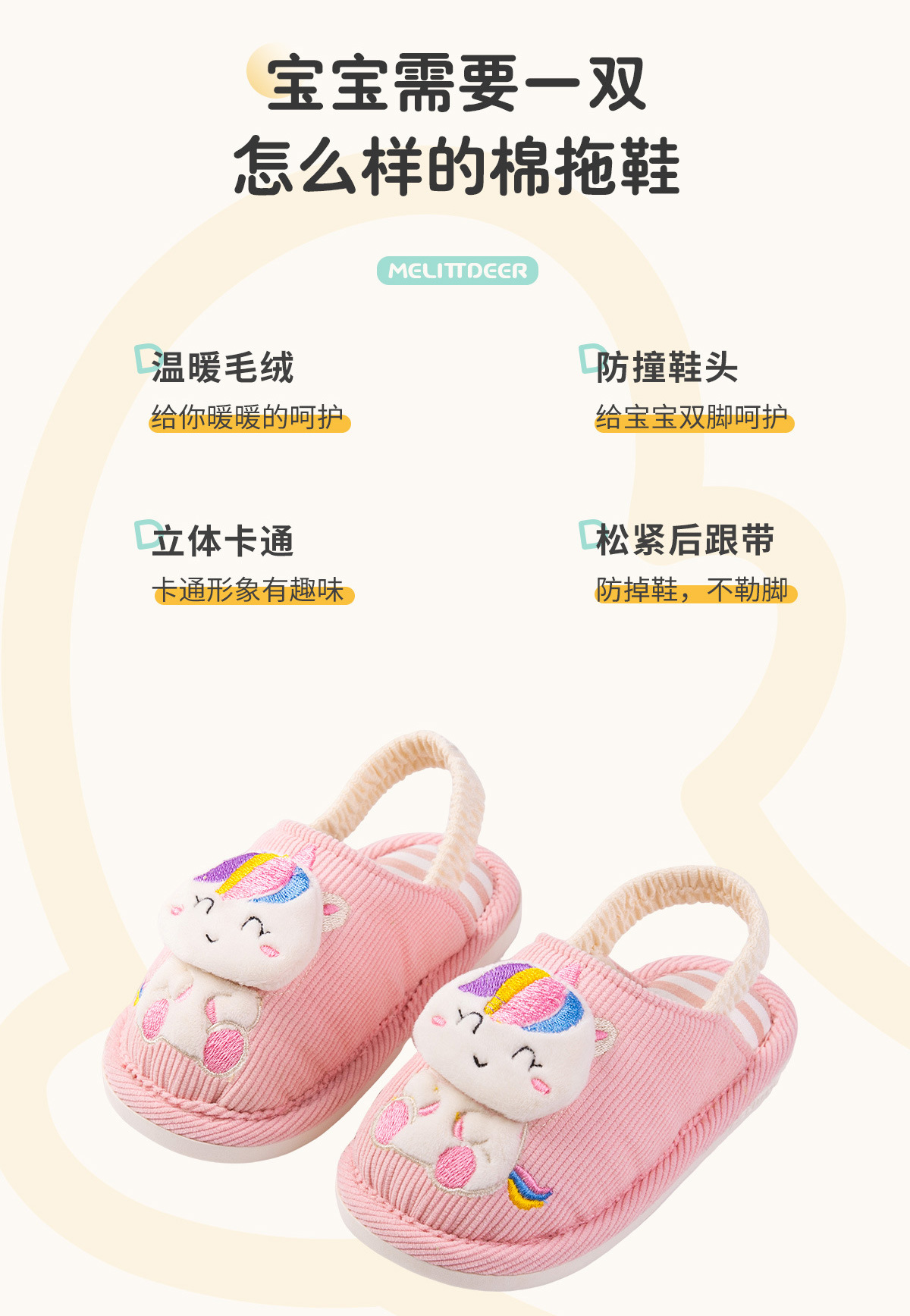 가을과 겨울 어린이 면화 도매 귀여운 만화 유니콘 아기 슬리퍼 실내 및 야외 따뜻한 미끄럼 면화 슬리퍼스토어 가기