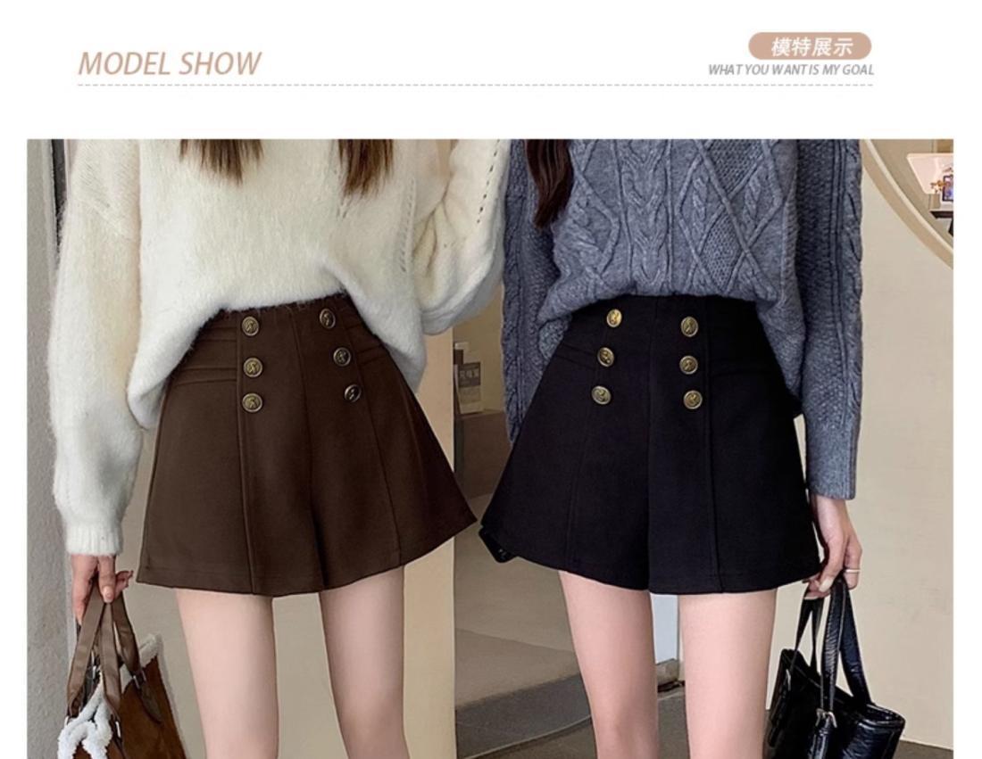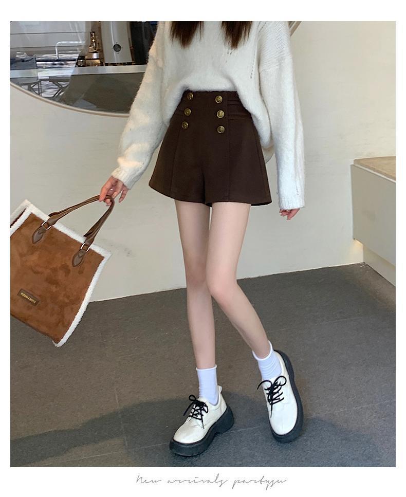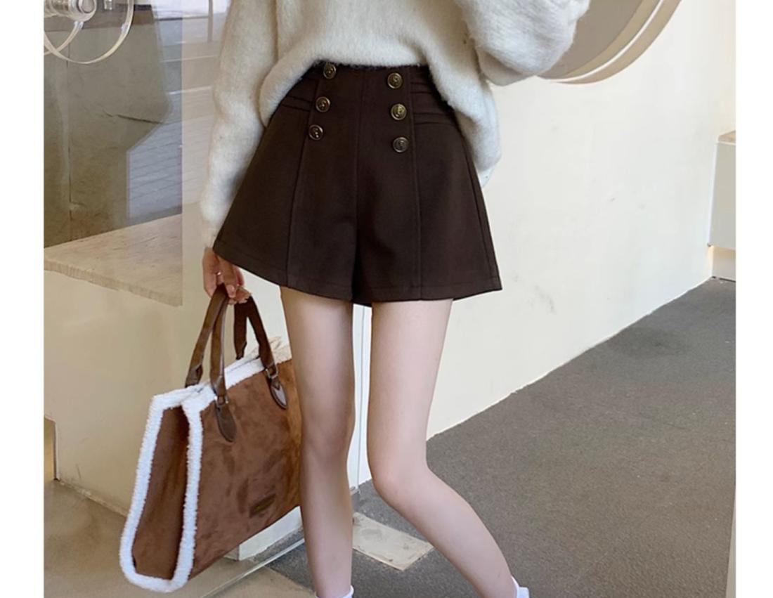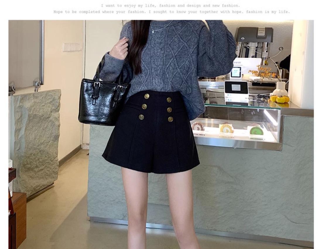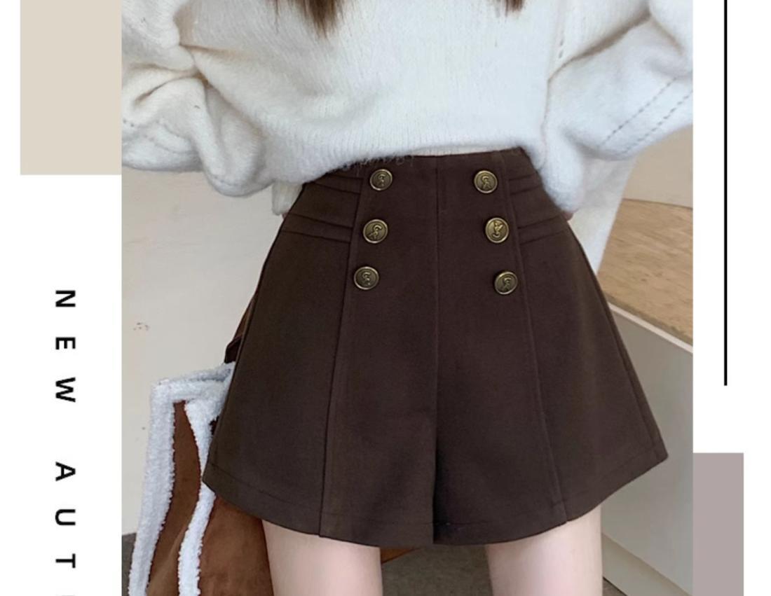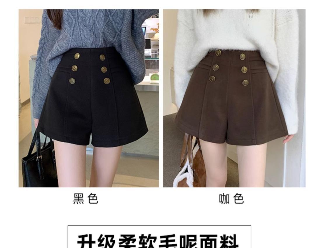 높은 허리 모양의 캐주얼 모직 반바지 여성의 가을과 겨울 2023 겨울 새로운 슬림 룩 올매치 와이드 레그 부츠스토어 가기