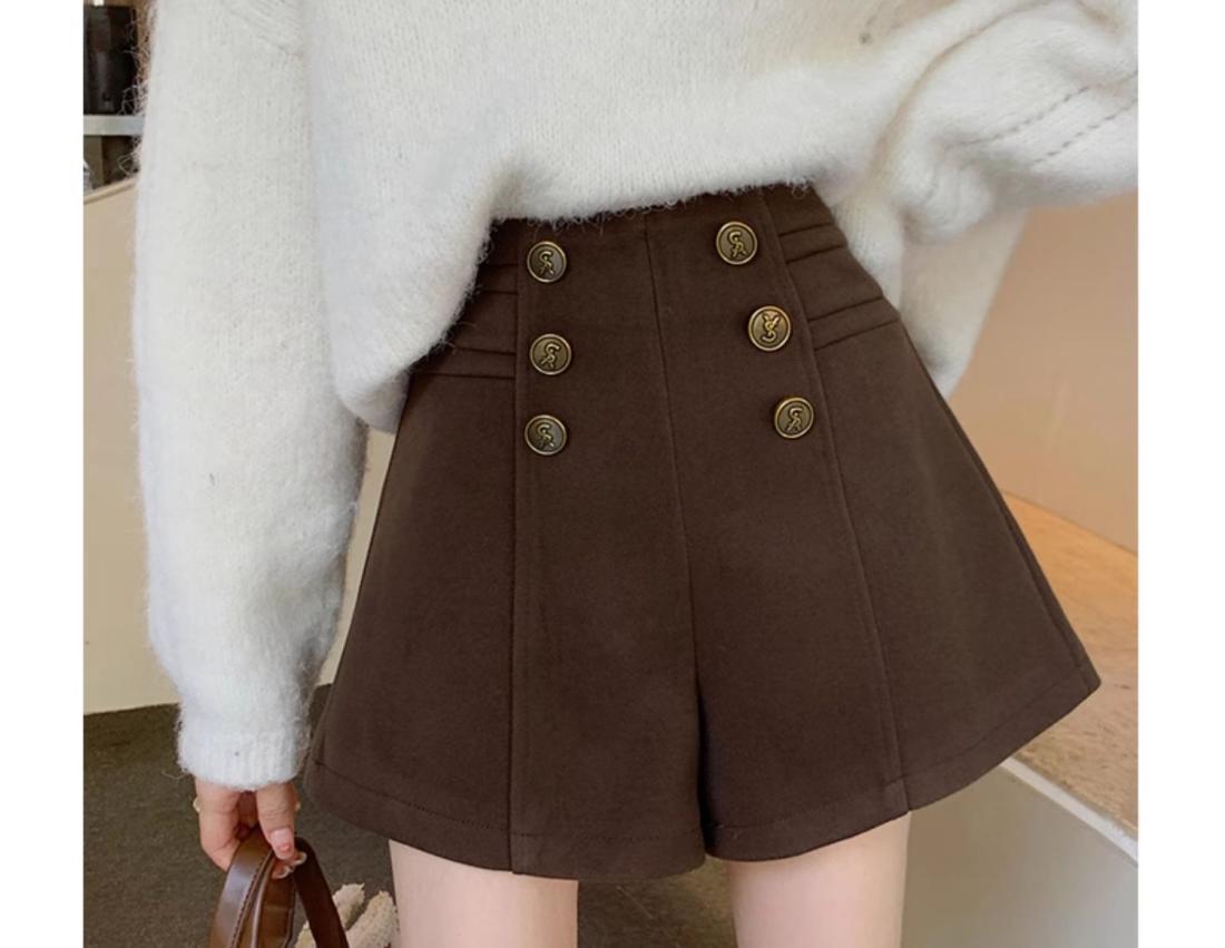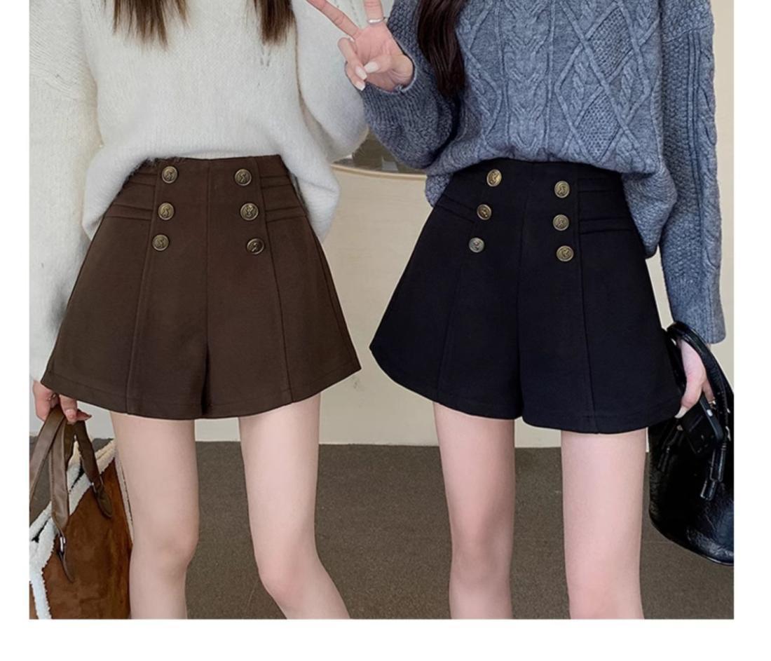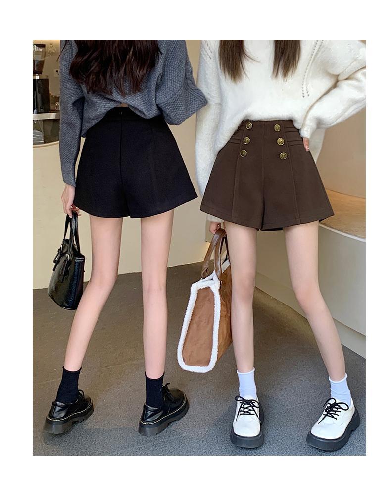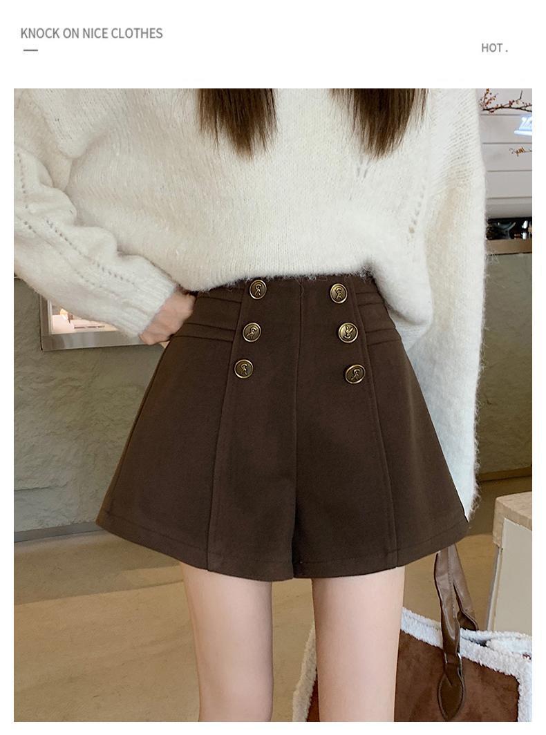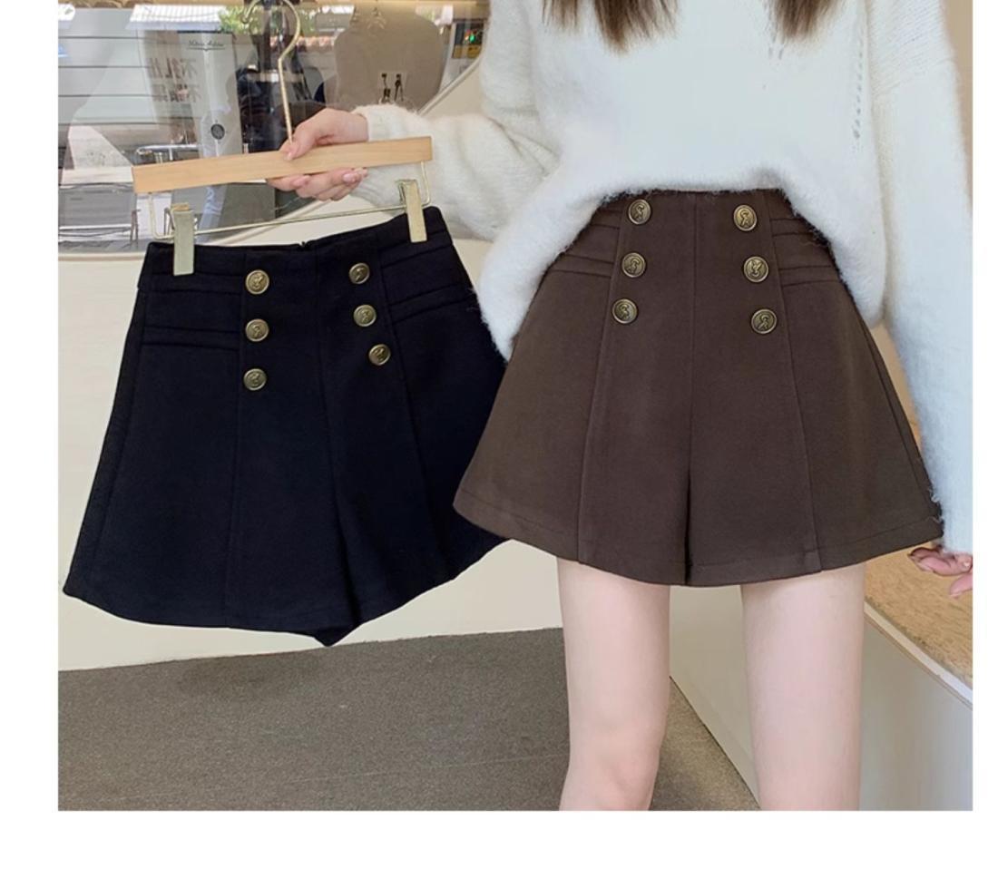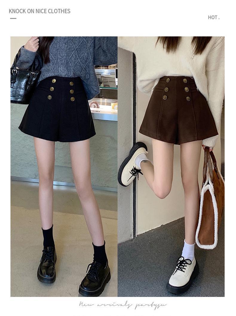 높은 허리 모양의 캐주얼 모직 반바지 여성의 가을과 겨울 2023 겨울 새로운 슬림 룩 올매치 와이드 레그 부츠스토어 가기