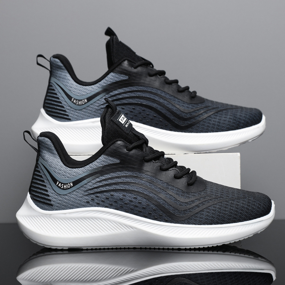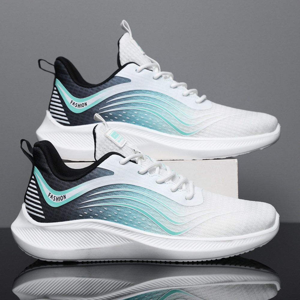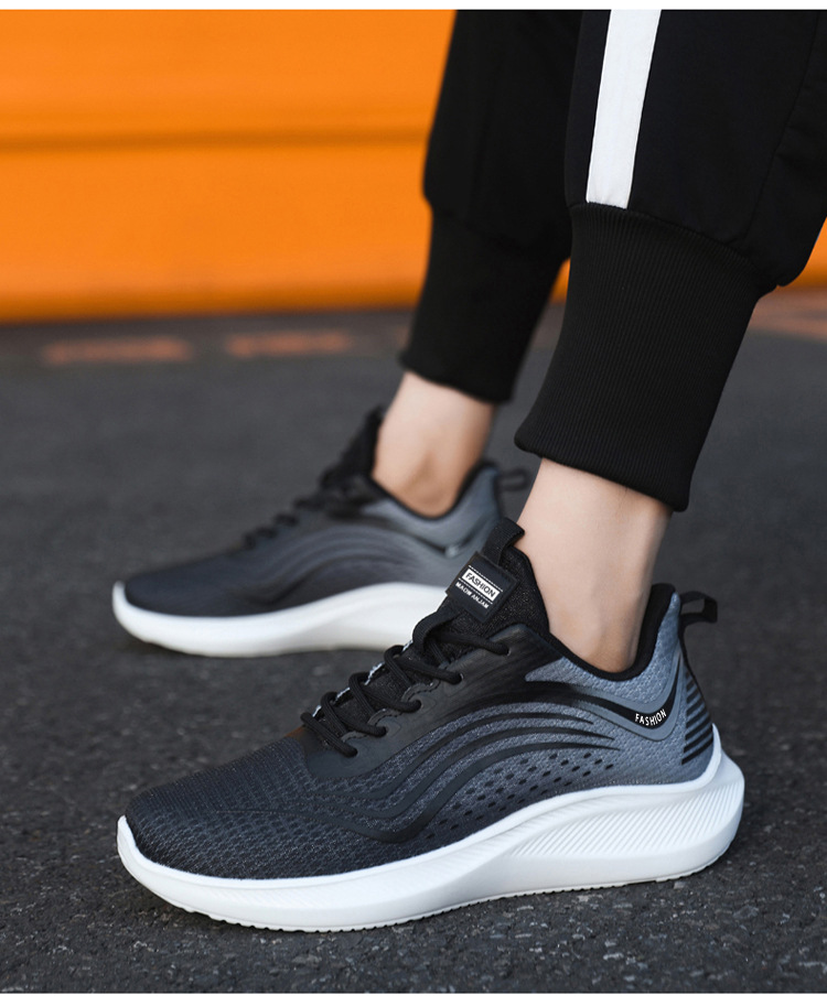 스포츠 신발 남성 여름 새로운 파리 짠 표면 패션 통기성 조수 신발 낮은 레이스 편안한 경량 남성 신발 도매