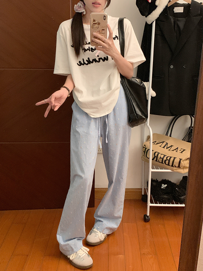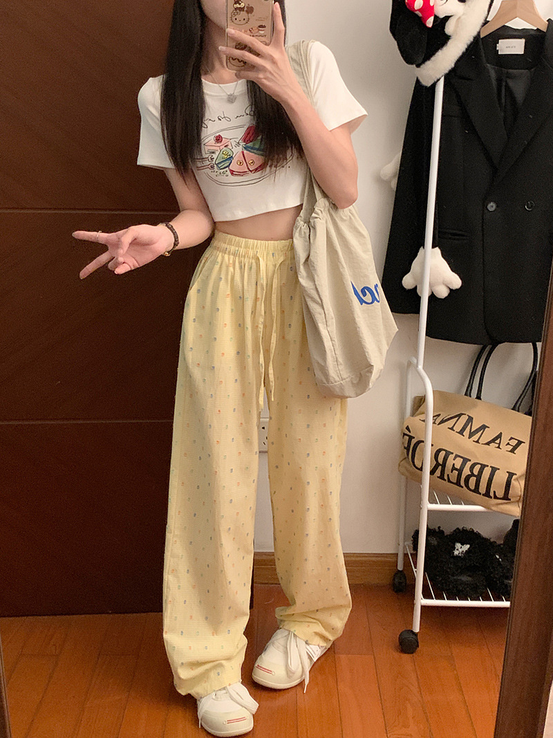 원래 포켓 넓은 다리 바지 여성 여름 얇은 새로운 캐주얼 플러스 사이즈 느슨한 슬림 높은 허리 투약 스트레이트 바지스토어 가기