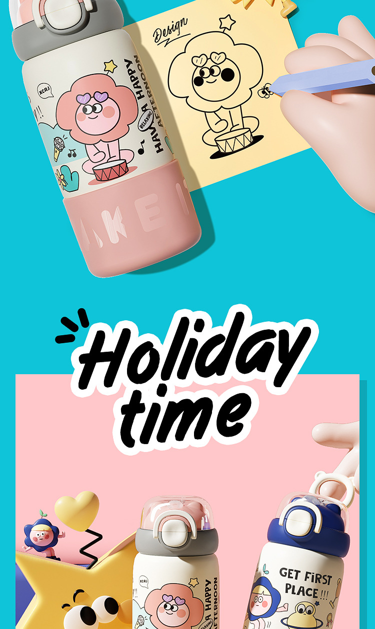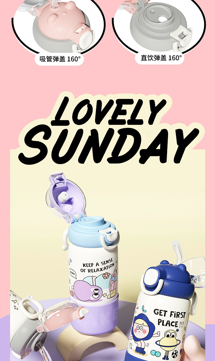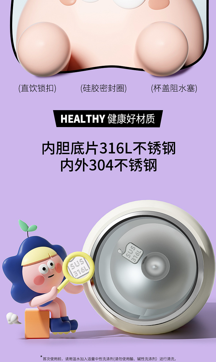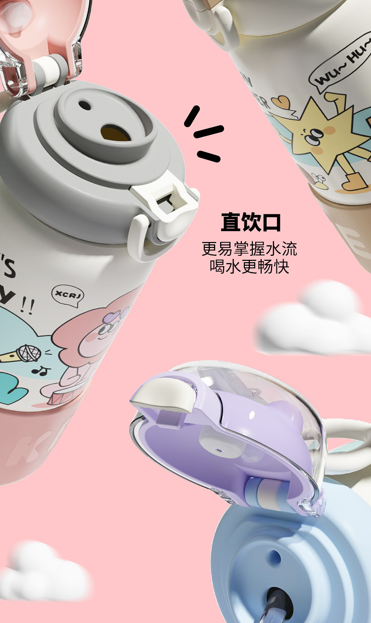보온병 컵 가정용 여성 304 스테인레스 스틸 어린이 학생 높은 가치 드롭 방지 휴대용 만화 커피 컵 워터 컵