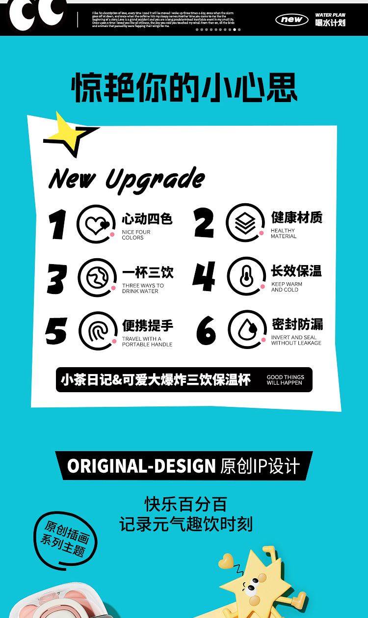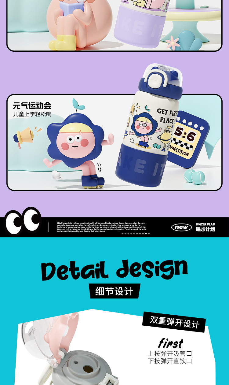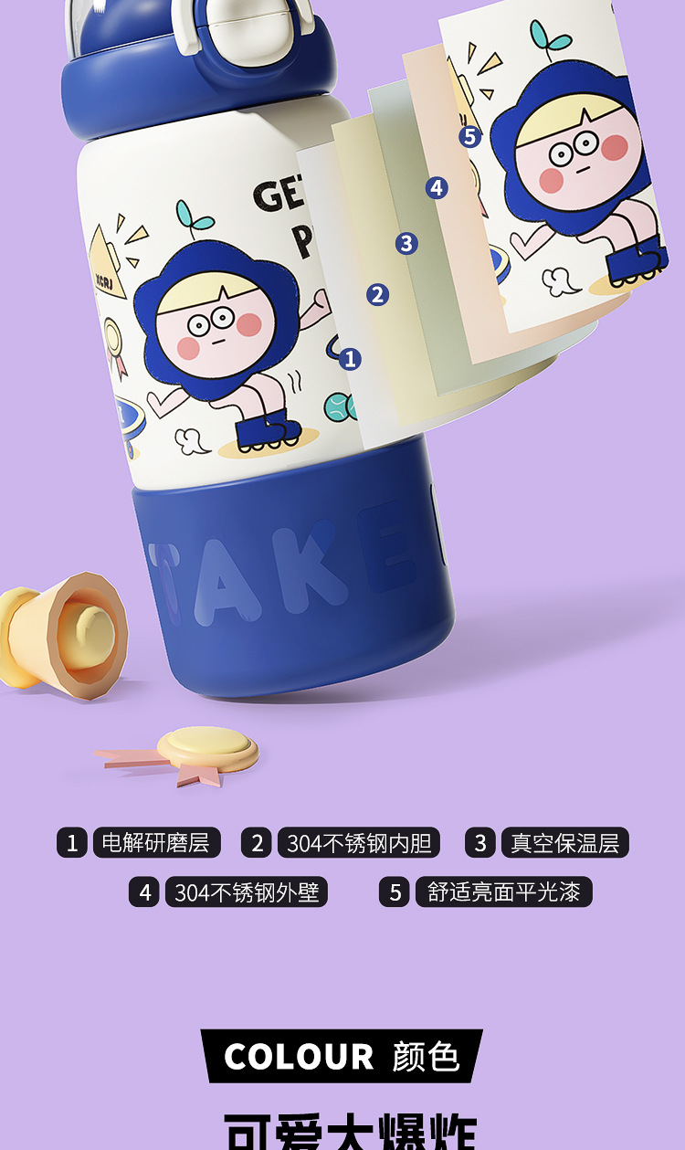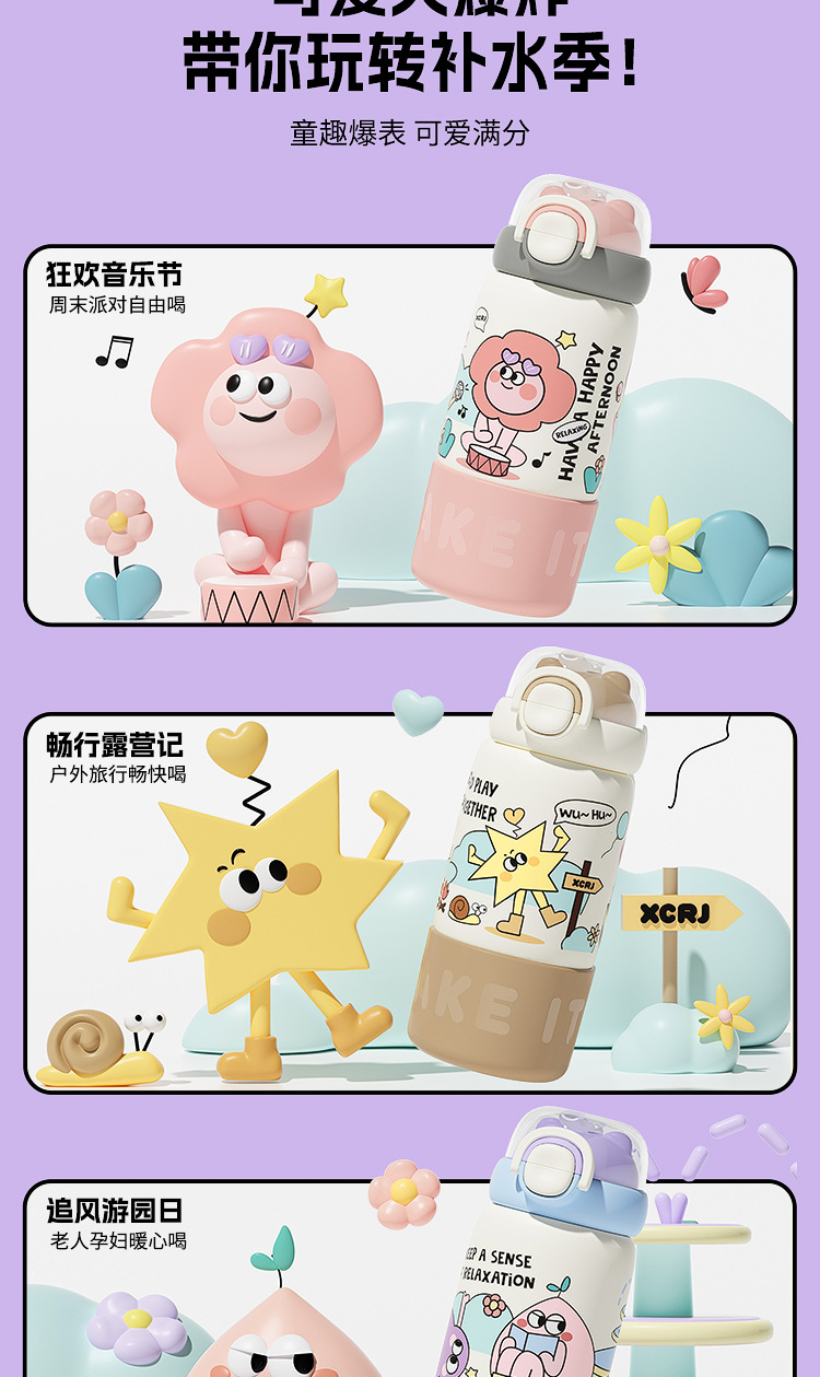 보온병 컵 가정용 여성 304 스테인레스 스틸 어린이 학생 높은 가치 드롭 방지 휴대용 만화 커피 컵 워터 컵