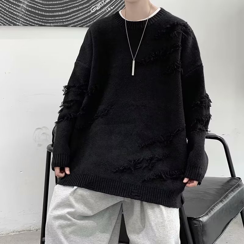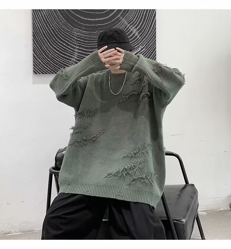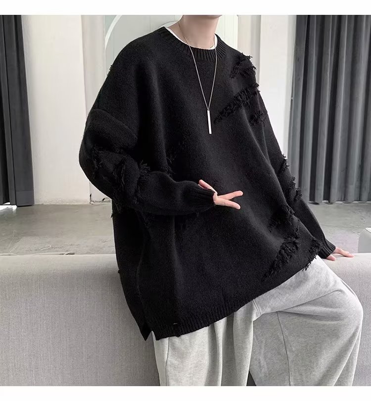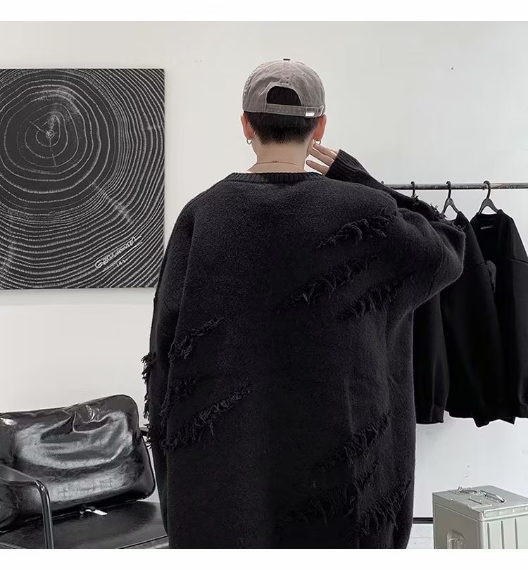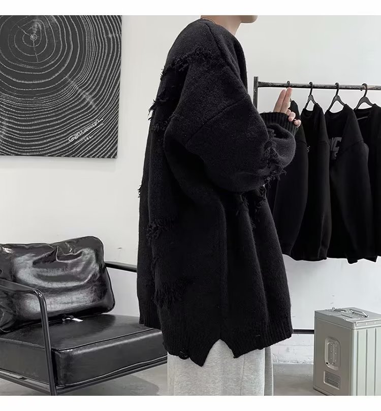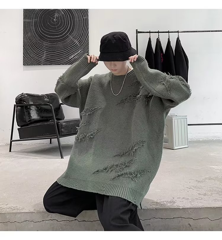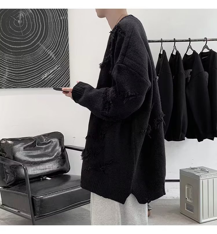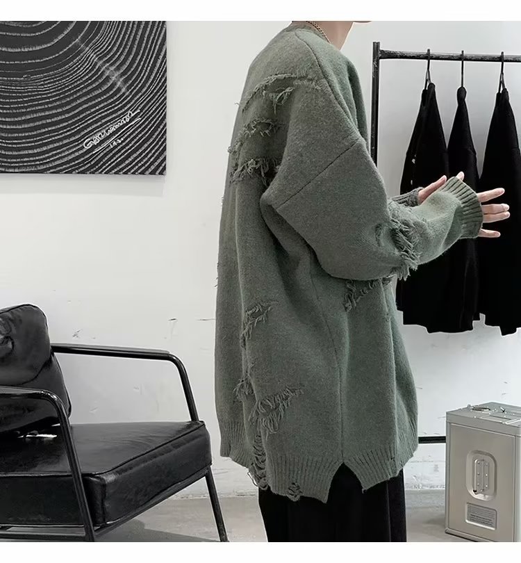 찢어진 스웨터 남자 오버 사이즈 트렌디 한 일본 스타일 빈티지 올 매치 캐주얼 스플릿 헴 스웨터 스웨터 커플스토어 가기