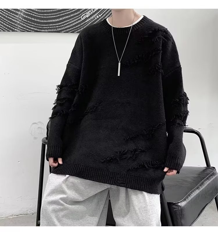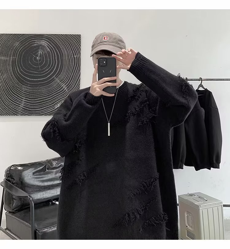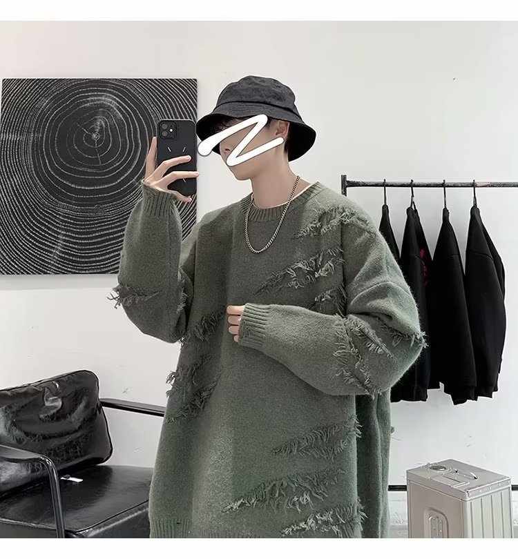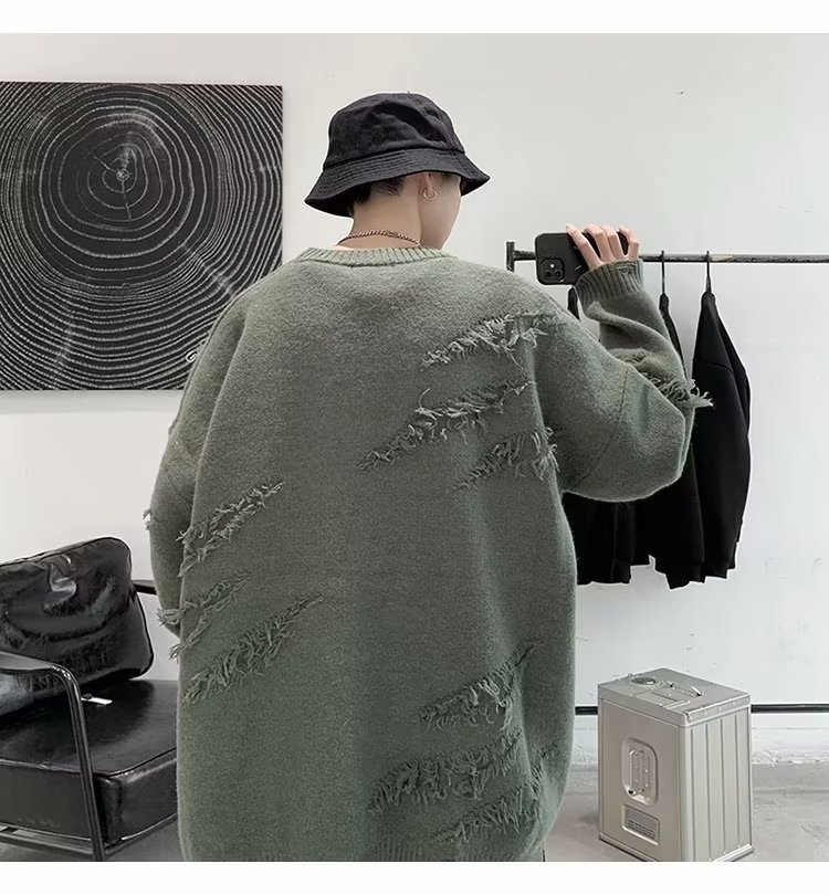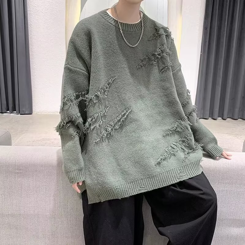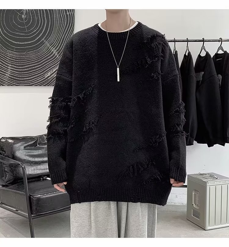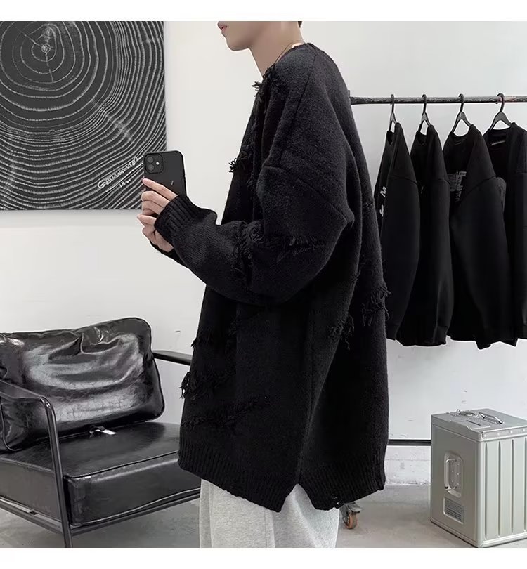 찢어진 스웨터 남자 오버 사이즈 트렌디 한 일본 스타일 빈티지 올 매치 캐주얼 스플릿 헴 스웨터 스웨터 커플스토어 가기