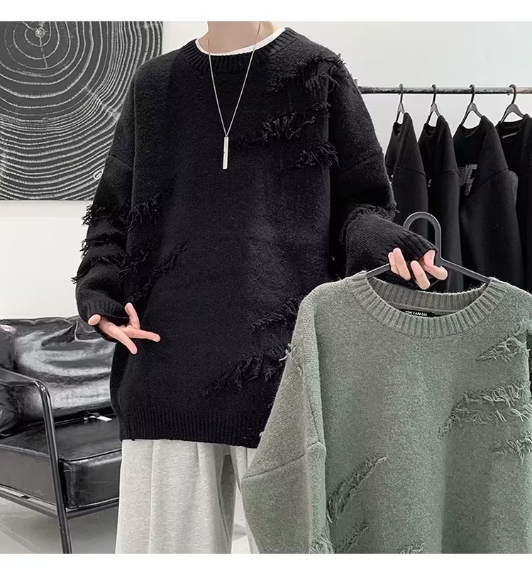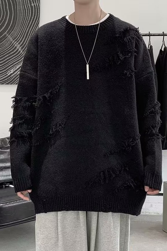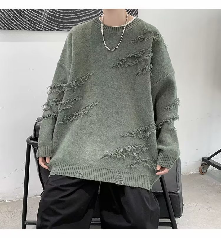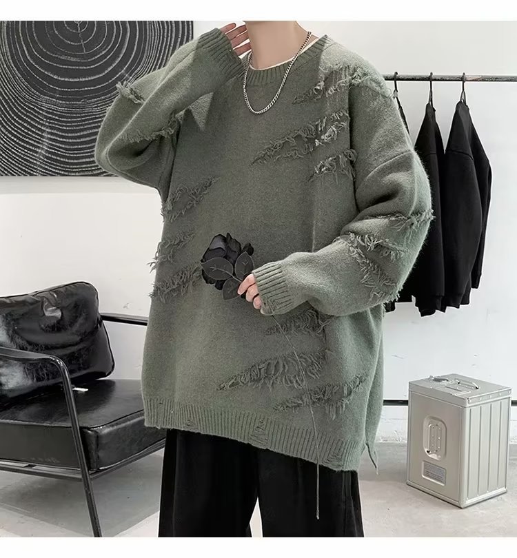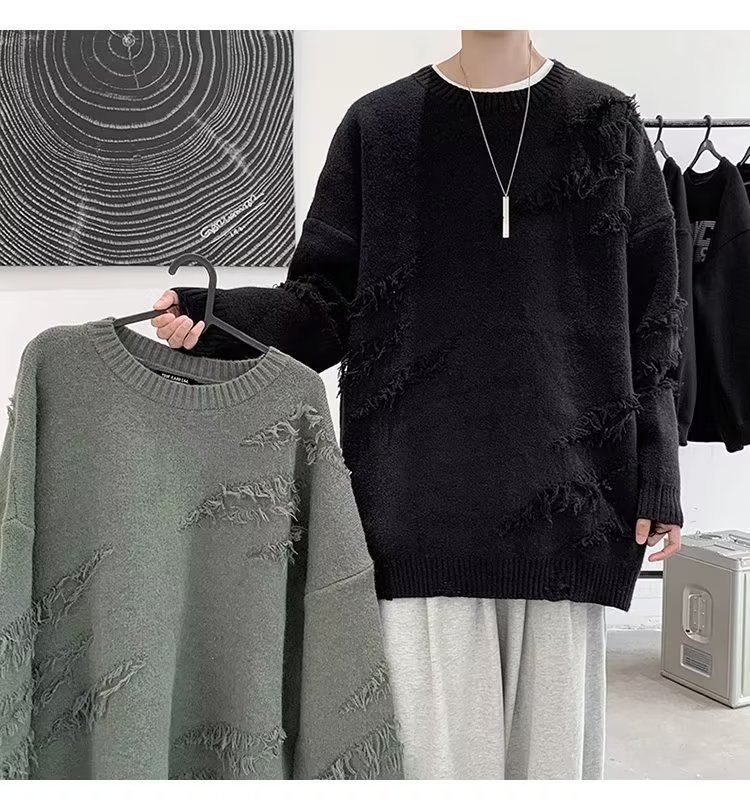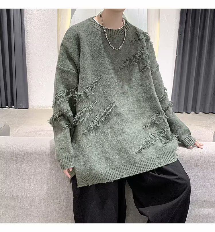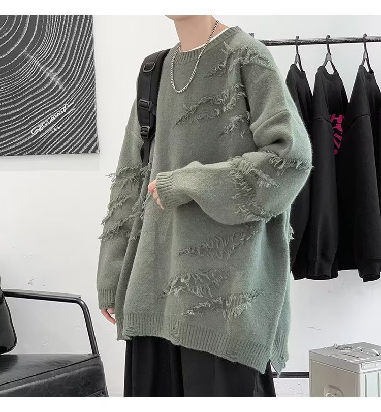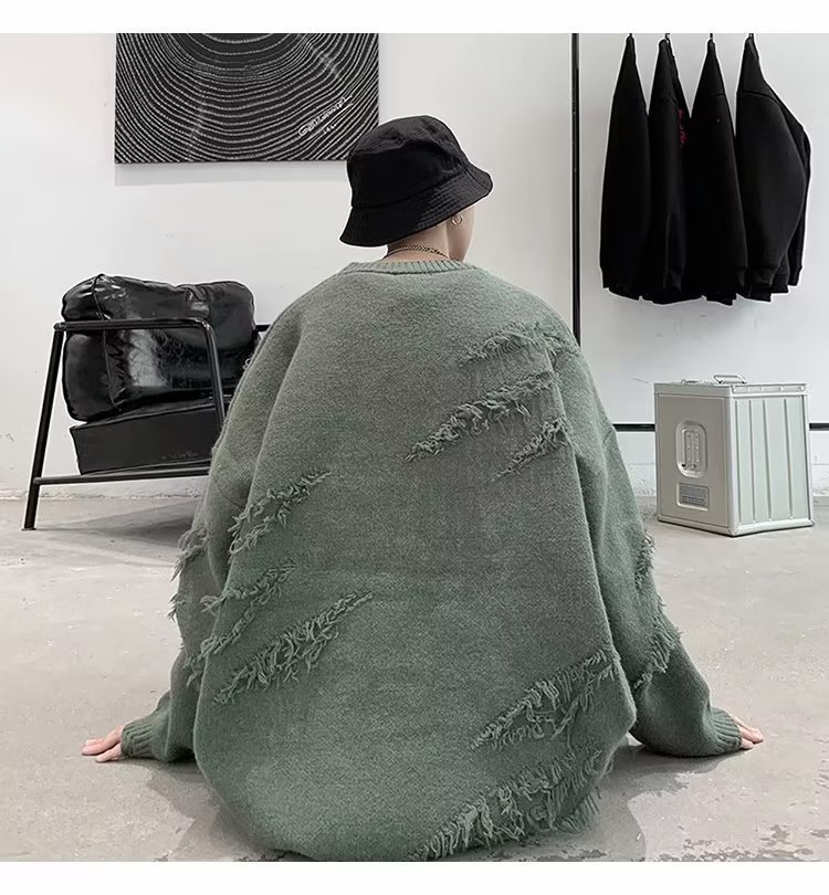 찢어진 스웨터 남자 오버 사이즈 트렌디 한 일본 스타일 빈티지 올 매치 캐주얼 스플릿 헴 스웨터 스웨터 커플스토어 가기