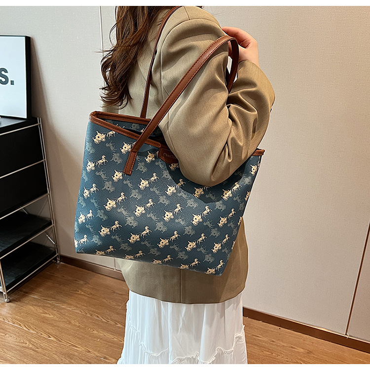높은 가치의 인기있는 인쇄 된 여성 패션 2024 새로운 대용량 어깨 가방 인쇄 통근 언더암 가방