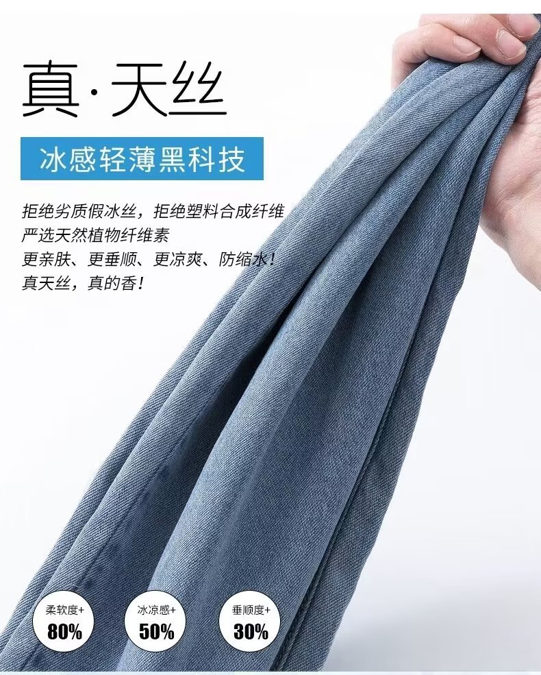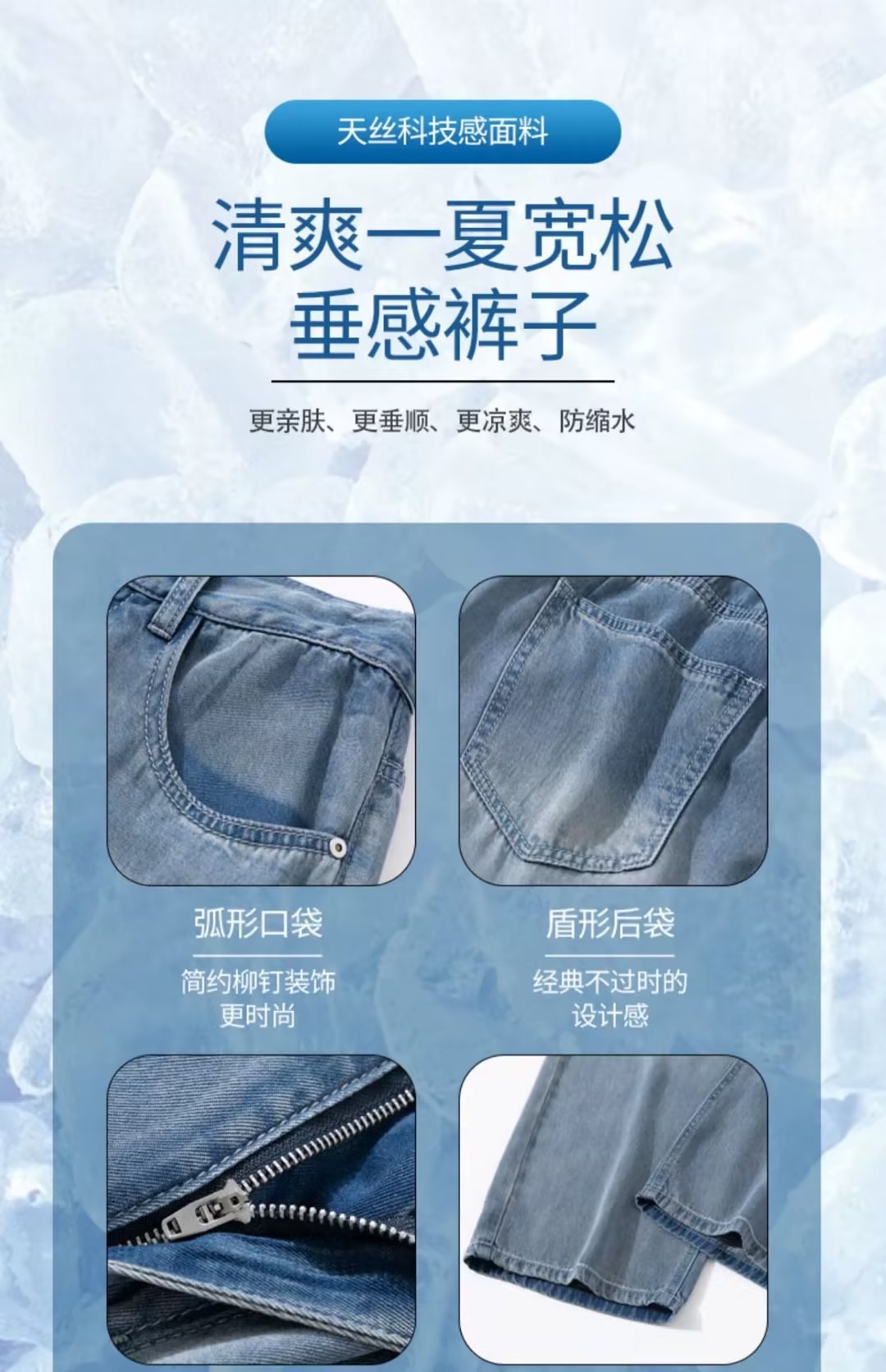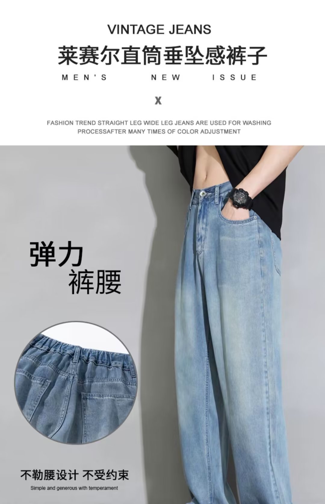 텐셀 청바지 남성용 여름 얇은 2024 트렌디 브랜드 루즈 스트레이트 캐주얼 아이스 산소 바 아이스 실크 넓은 다리 긴 바지스토어 가기