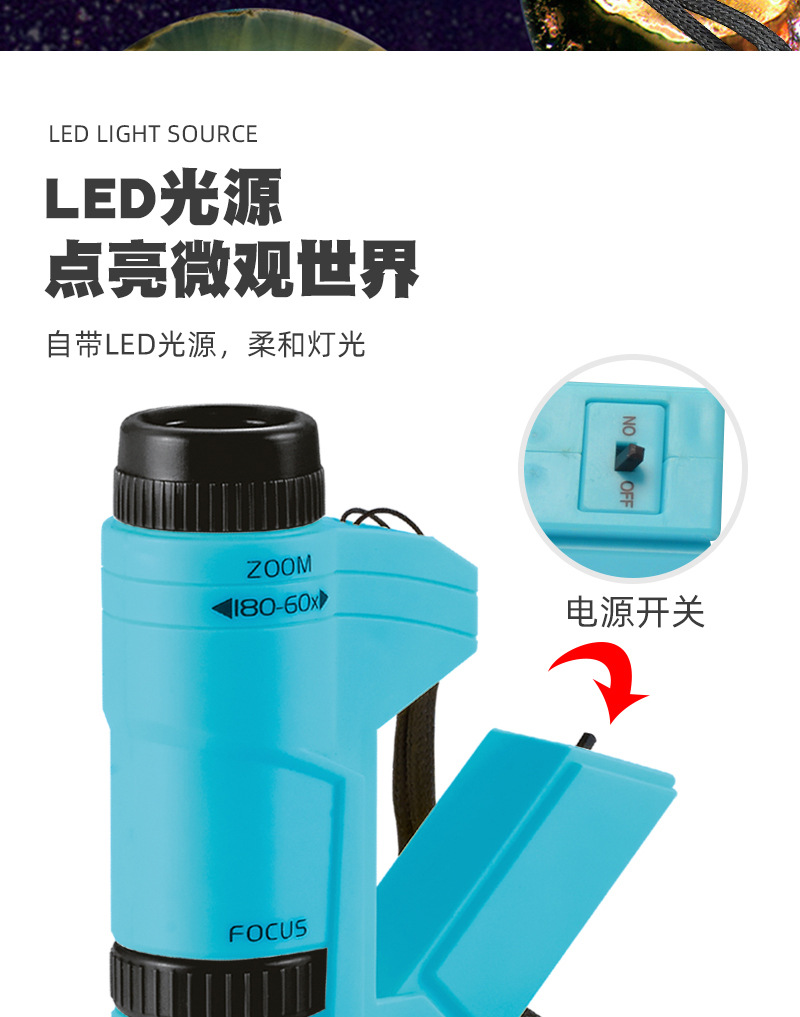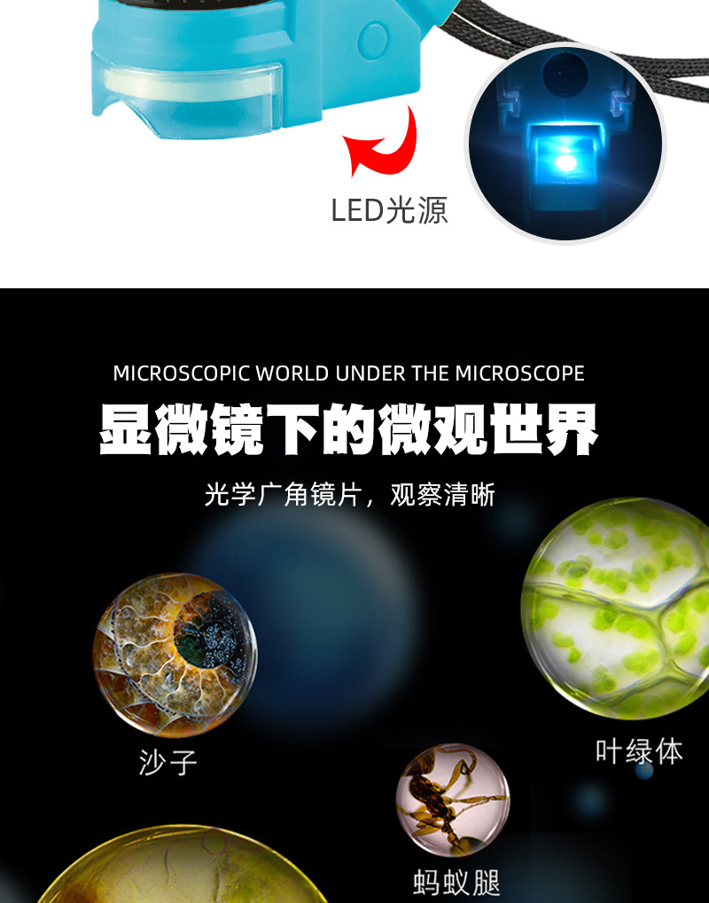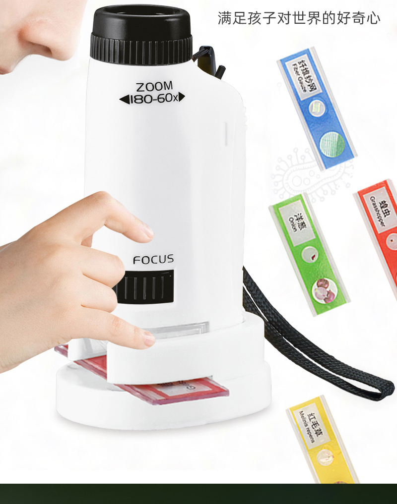 청바오 현미경 어린이 휴대용 휴대용 180 배 생물 표본 돋보기 학생 과학 실험 장난감스토어 가기