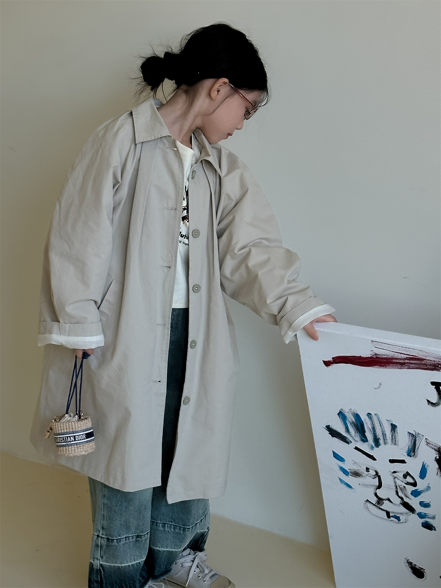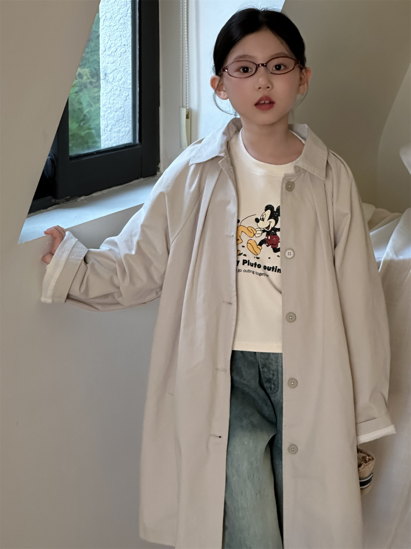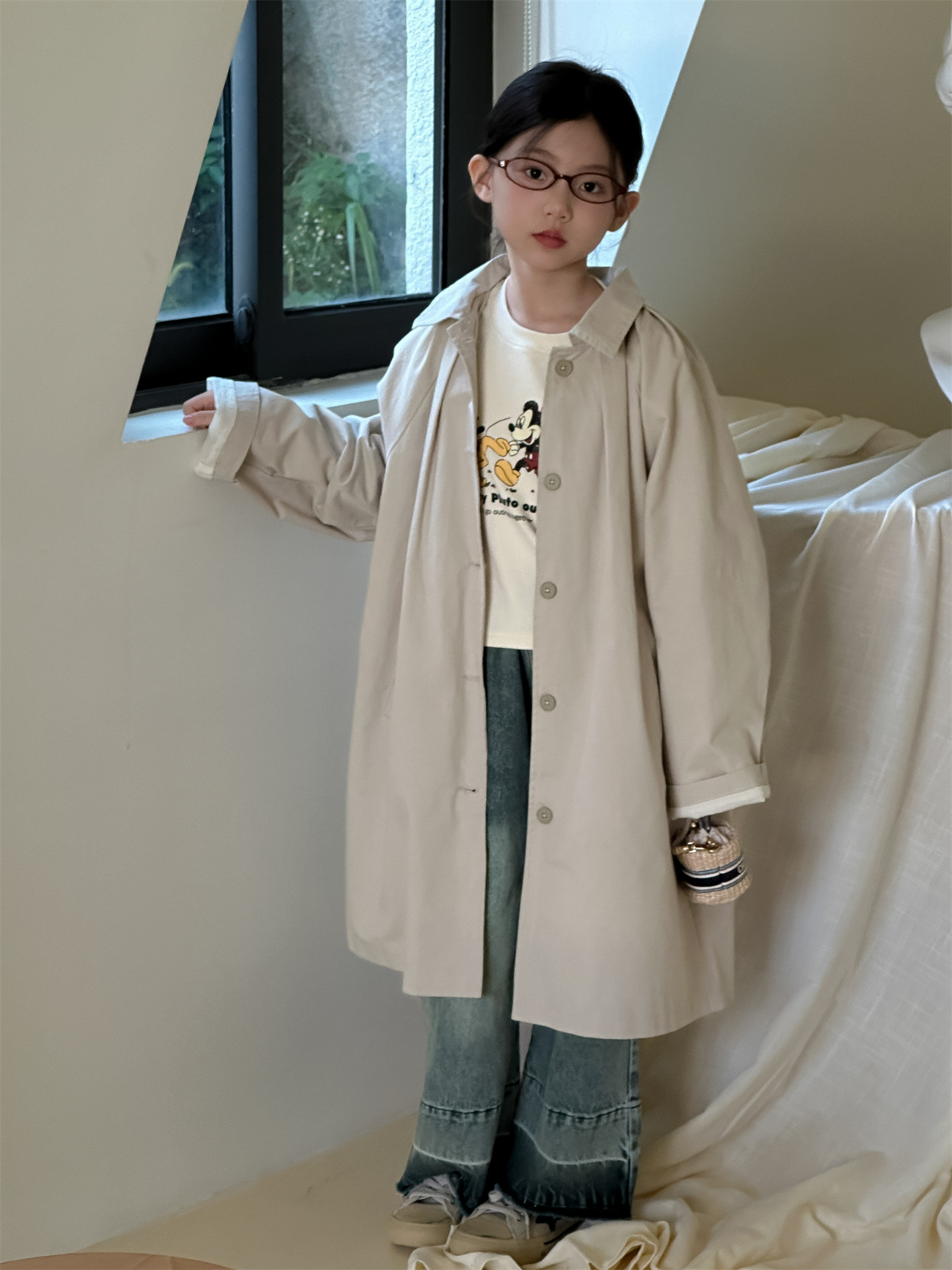 꽃과 한국 스타일 아동복 여아용 윈드브레이커 재킷 2024 가을 신상 레트로 헤본 스타일 중간 길이 재킷 트렌디스토어 가기